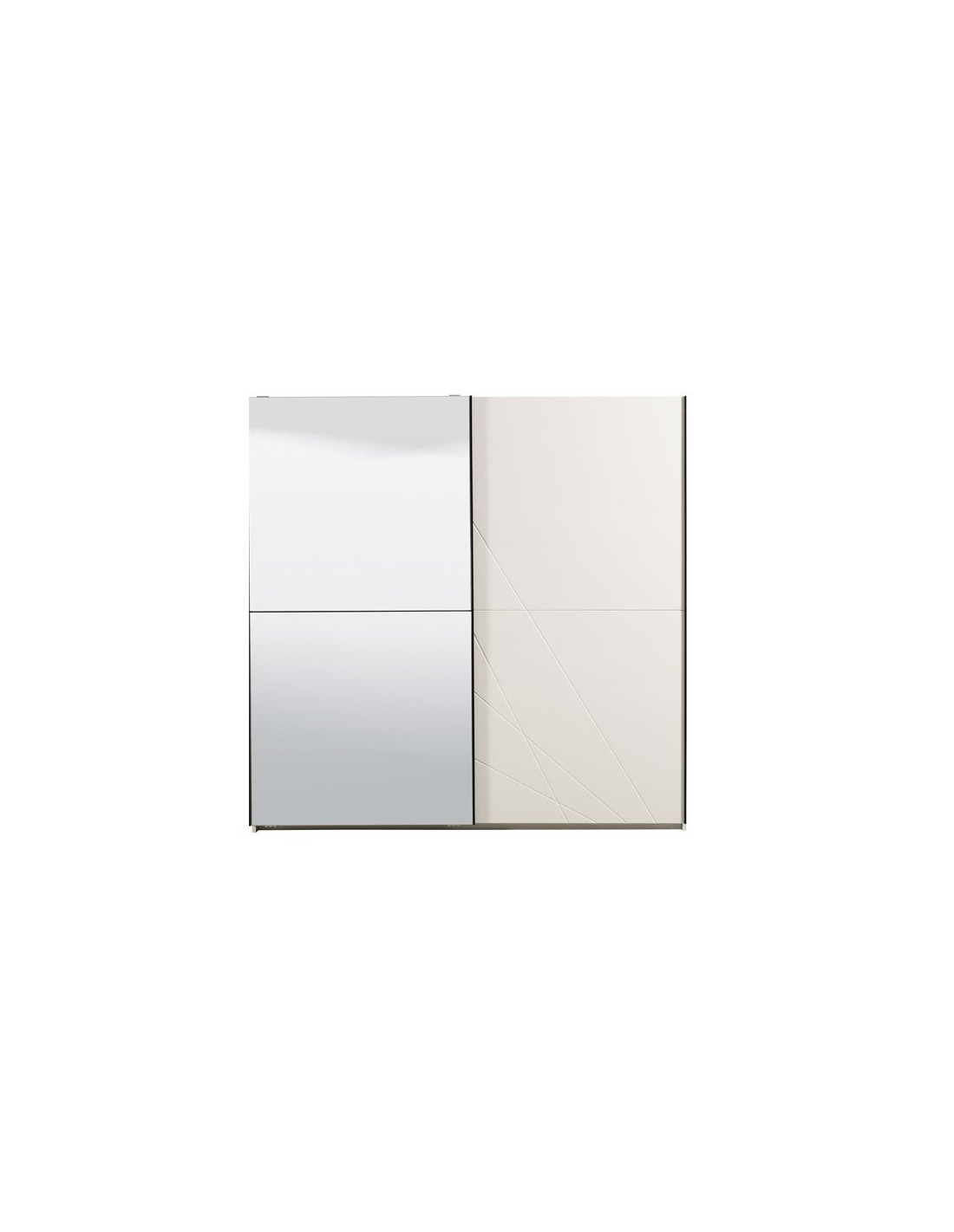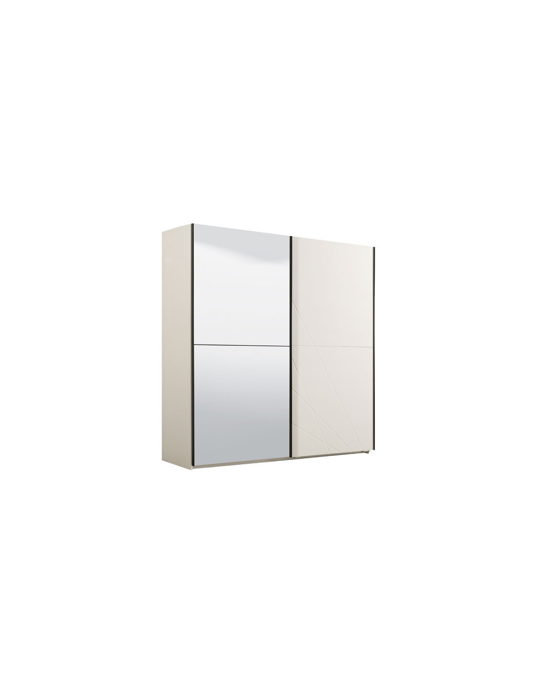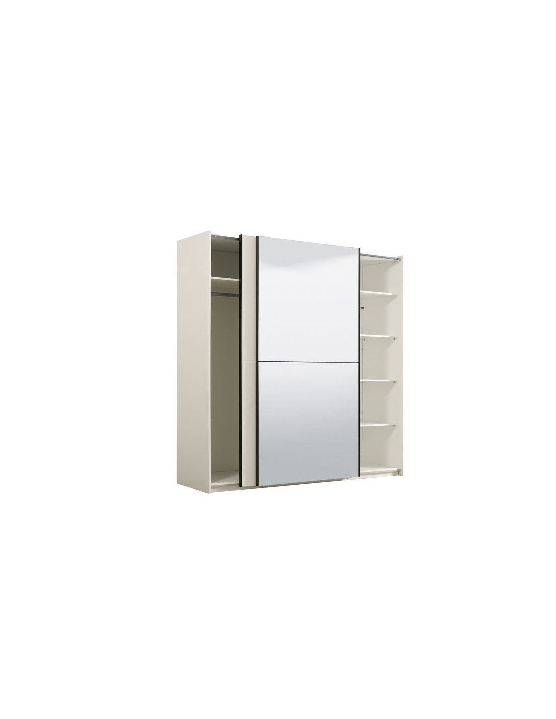 Ormar Ksanti 220 OG, u kombinaciji bijele boje i bijele 3D MDF lakirane folije s aplikacijom, dio je iste kolekcije elemenata za spavaću sobu. Ovaj model kliznog ormara sadrži šipku za ormar u središnjem dijelu te policu s lijeve i desne strane. Ormar ima ogledalo na lijevom kliznom elementu. Ima mogućnost ugradnje usporivača u klizni mehanizam, što dodatno doprinosi sigurnosti i funkcionalnosti.