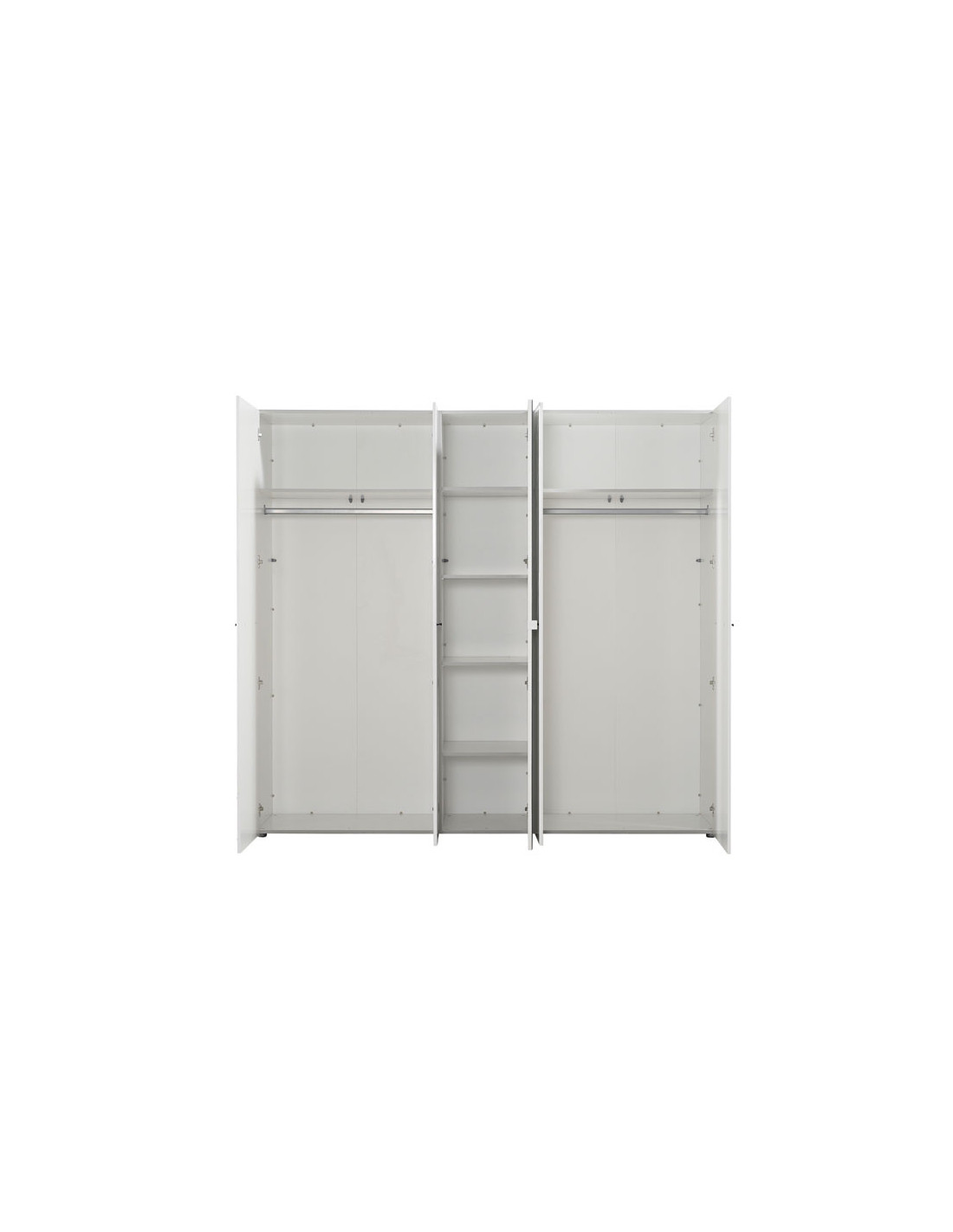 Ormar Ksanti 5K1O, u bijeloj boji s frontama obloženim bijelom 3D MDF folijom s aplikacijom, dio je iste kolekcije elemenata za spavaću sobu. Korisni prostor je maksimalno iskorišten i sastoji se od seta polica u središnjem dijelu i dvije šipke za garderobu postavljene bočno. Ormar XANTI 5K1O ima veliko ogledalo smješteno u središnjem dijelu. Ima mogućnost dodavanja polica.