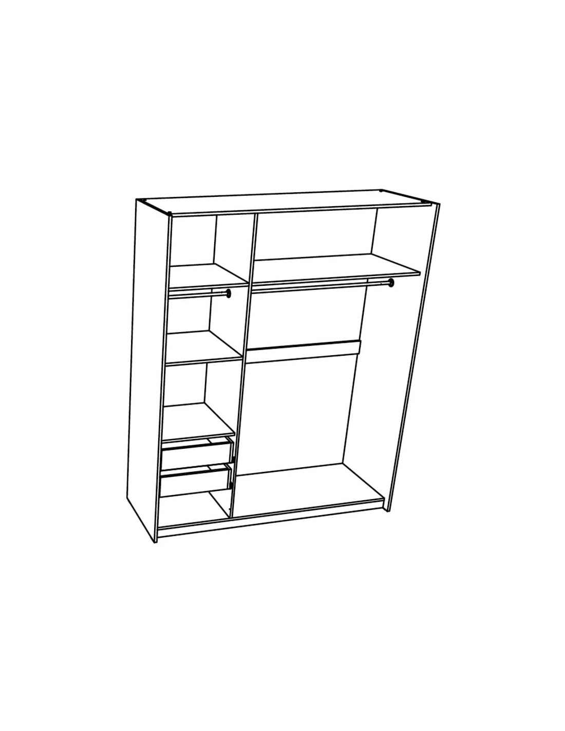 ELEGANCE LINE američki ormar AP 180 pravo je rješenje za postizanje praktičnosti interijera i maksimalnog iskorištenja raspoloživog prostora. Unutrašnjost ormara je dvodijelna. Jedan dio američkog ormara sadrži samo šipku za garderobu, a drugi dio je podijeljen policama za odlaganje robe, s 2 ladice na dnu, zajedno s šipkom za garderobu. Izrađen je od univerzalne debljine 18 mm i ima mehanizam za sporo zatvaranje.