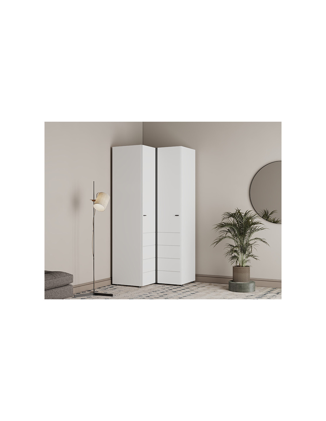 Ormar NEVIS UG h207, u bijeloj boji, funkcionalno je i moderno rješenje za potpuno iskorištavanje prostora. Kutni dizajn omogućuje optimalnu organizaciju ormara i dodataka - jedna strana ormara sadrži vješalicu za odjeću, dok druga ima pregrade, pružajući praktičan i čist iskoristiv prostor. Ormar NEVIS UG h207 pripada kolekciji NEVIS i može se kombinirati s drugim modelima iz iste linije.