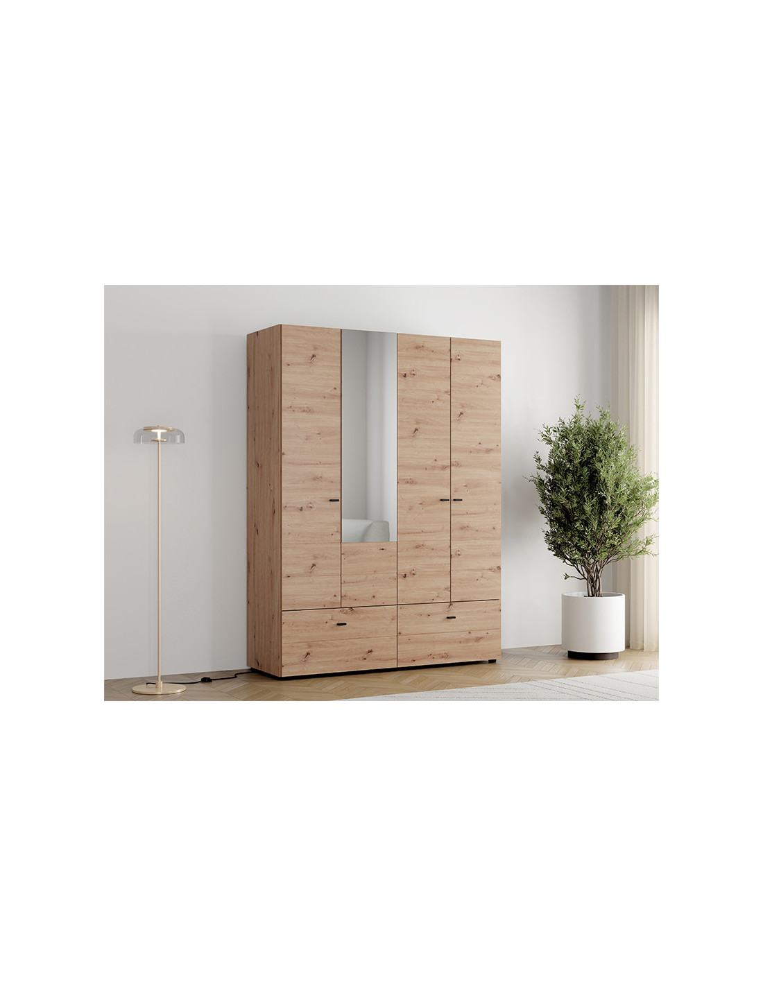 Ormar NEVIS 4K2F1O h207, u dekoru artisan hrasta, funkcionalno je i moderno rješenje za organizaciju vašeg ormara. Korisni prostor uključuje dvokrilni dio s vješalicom za odjeću, dvokrilni dio s pregradama i dvije prostrane duboke ladice, što omogućuje praktičnu i preglednu organizaciju odjeće i dodataka. Ogledalo dodatno doprinosi funkcionalnosti i vizualno povećava prostor. Postoji mogućnost dodavanja seta polica za još bolju organizaciju unutarnjeg prostora.