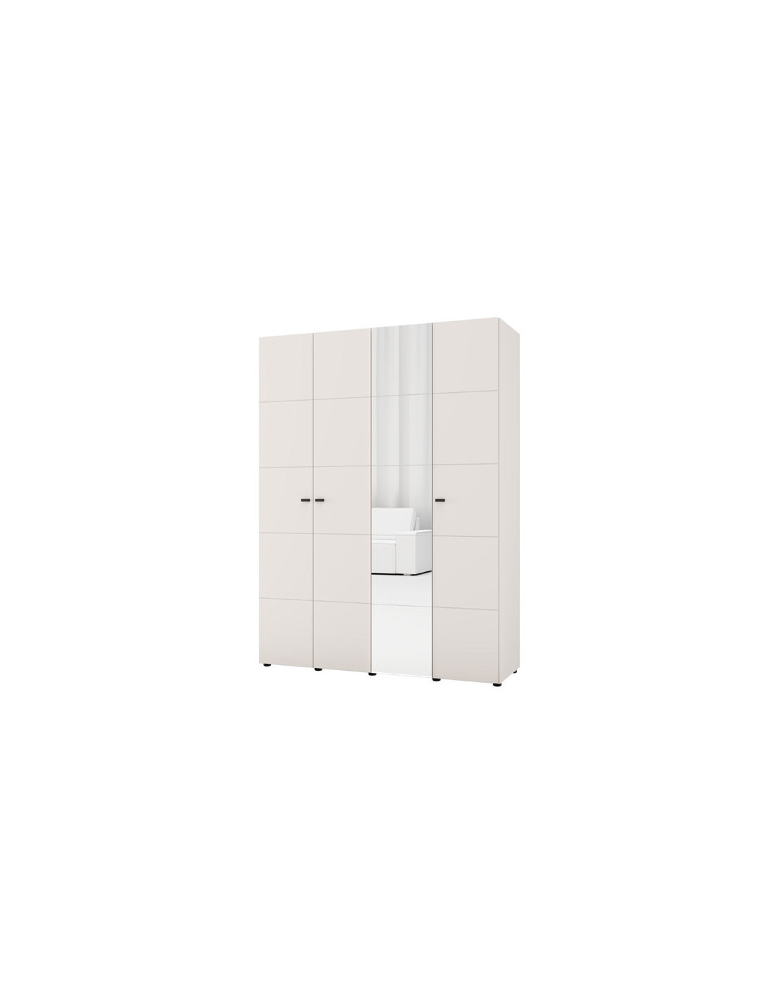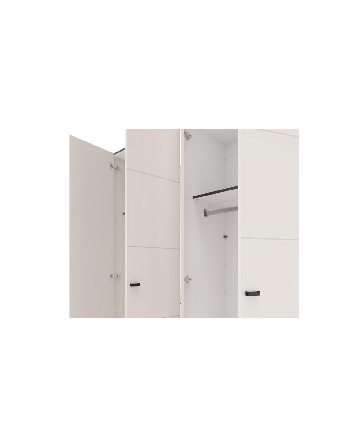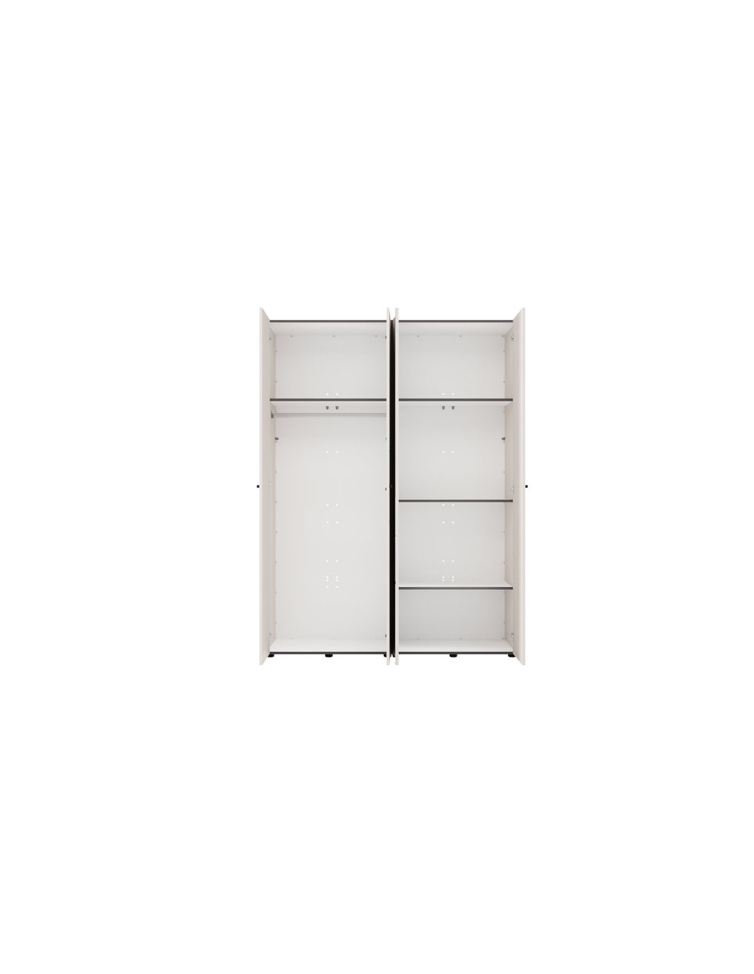 Iskoristivi prostor četverokrilnog ormara organiziran je kroz jedan dvokrilni dio s vješalicom za odjeću i drugi dvokrilni dio s policama, što omogućuje pregledno skladištenje odjeće i dodataka. Postoji mogućnost naknadne ugradnje seta polica za još bolju prilagodljivost i organizaciju prostora.
