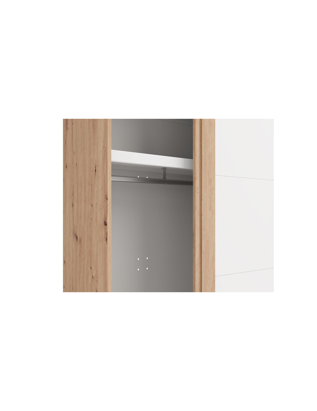 Korisni prostor ormara sastoji se od dvije šipke za garderobu, a postoji mogućnost naknadnog dodavanja polica, što poboljšava vidljivost i organizaciju ormara. Također je moguće ugraditi usporivač kliznog mehanizma za tiho korištenje, kao i dodati rasvjetu, što poboljšava vidljivost i vizualni doživljaj unutarnjeg prostora.