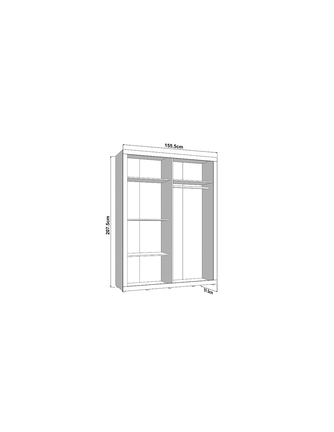 Š 155,5 cm / D 52 cm / V 207,5 cm