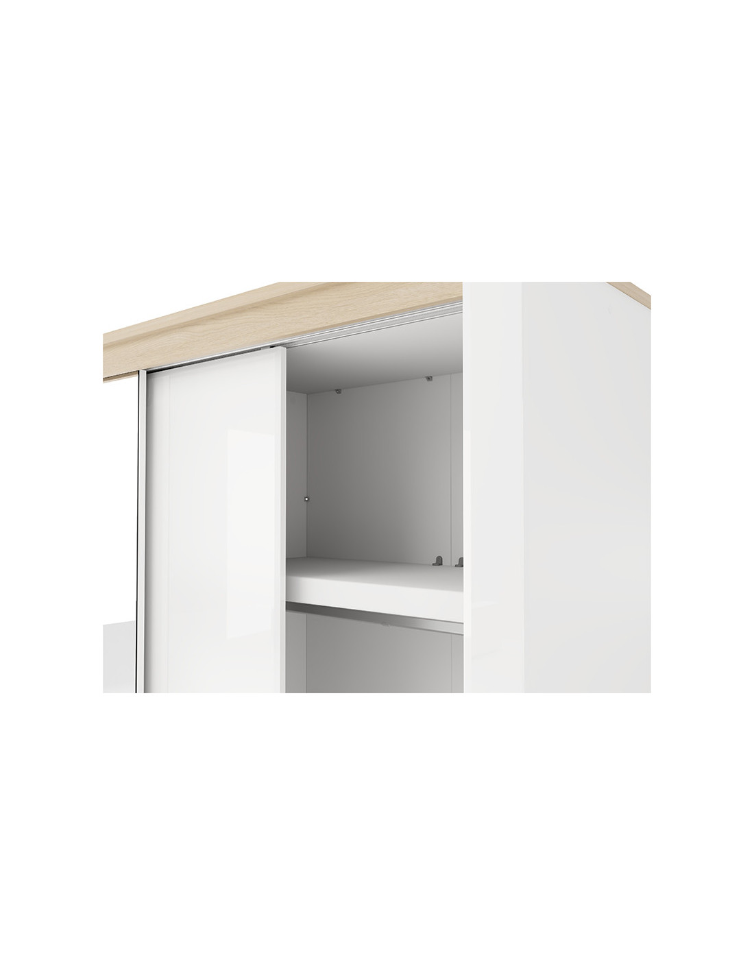 Korisni prostor ormara sastoji se od dvije vješalice za odjeću i jednog dijela s pregradama, što omogućuje pregledno i praktično skladištenje odjeće. Ormar također nudi mogućnost naknadnog dodavanja seta od dvije ladice, što dodatno poboljšava funkcionalnost unutarnjeg prostora.