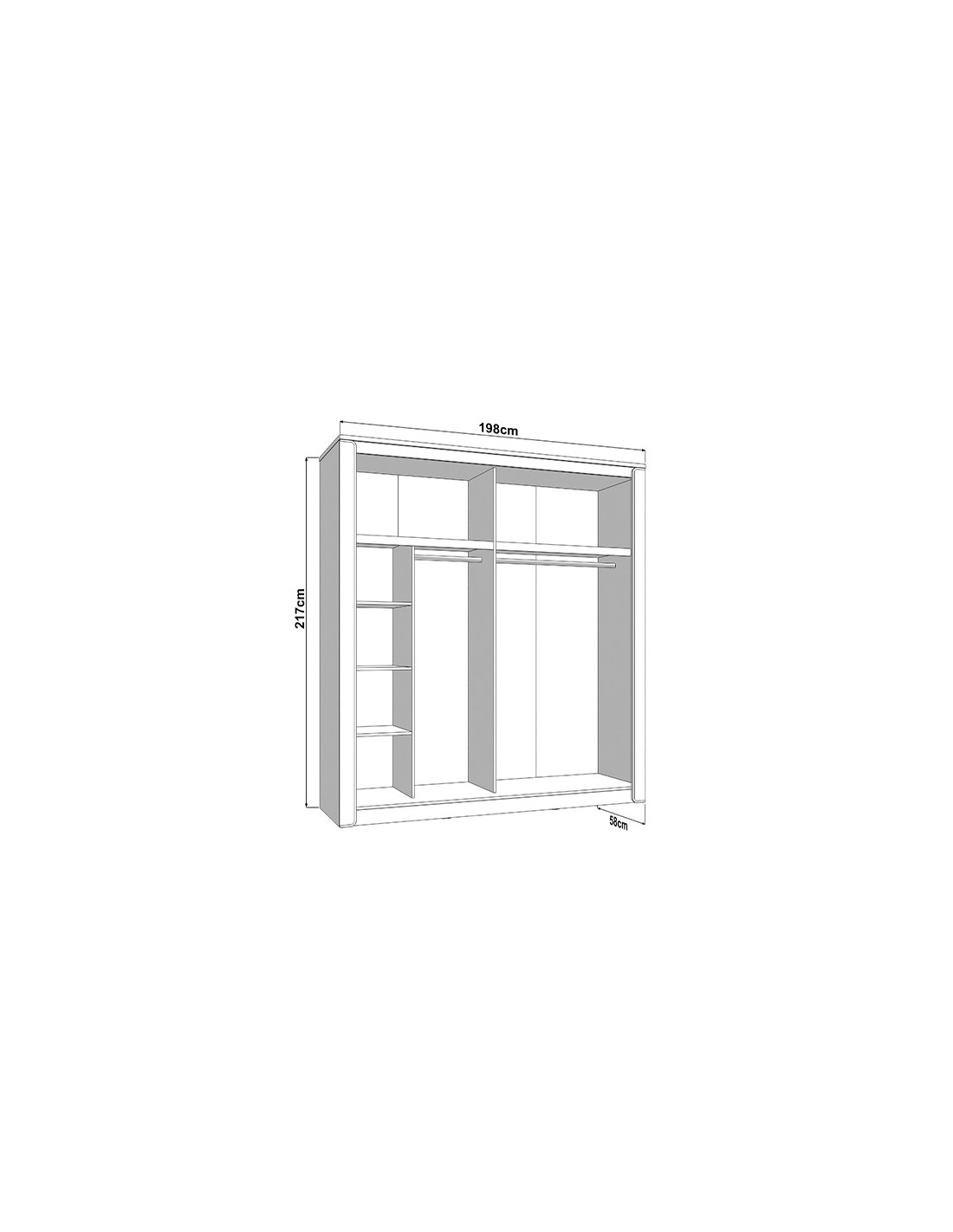 Š 198,5 cm / D 60 cm / V 218 cm