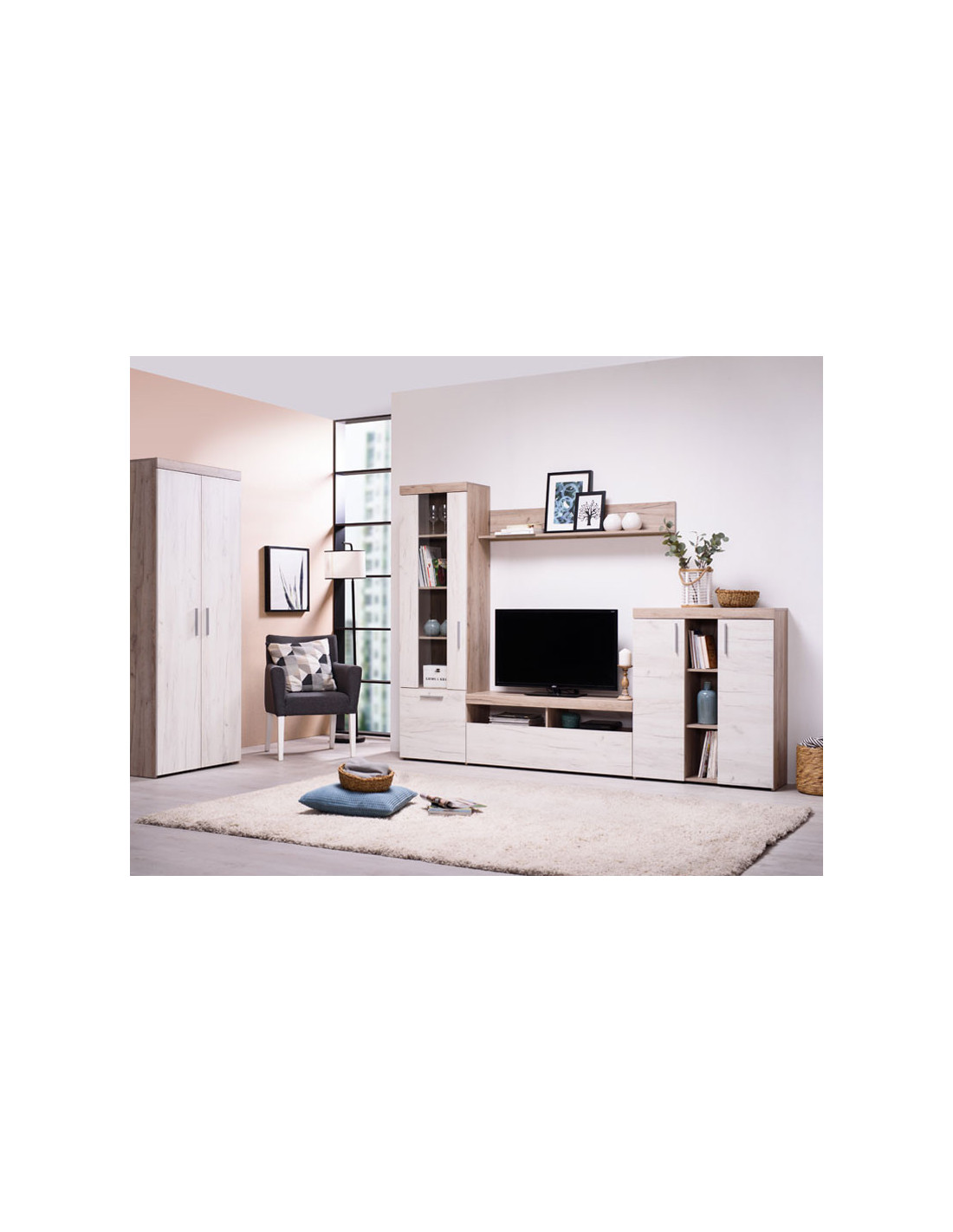 Ormar ARNO 2K, u kombinaciji sa sivim i bijelim hrastovim dekorima, odlikuje se čistim linijama i bogatim teksturama, kao i praktičnim uporabnim prostorom koji se sastoji od ormara i polica iznad njega. Ovaj model ormara s dva vrata kompatibilan je s istoimenom policom za funkcionalno opremanje dnevnog boravka.