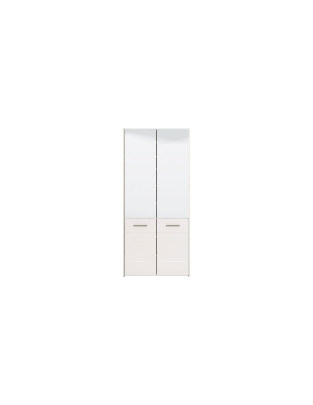 Ormar MENORCA 2K 2OG, u kombinaciji bijele i bijele lako folije, obogaćen je sa dva praktična ogledala i gornjim dijelom elementa. U unutrašnjosti se nalaze zatvorene policije za odlaganje obuće, koje pružaju mogućnost racionalne organizacije predsoblja.