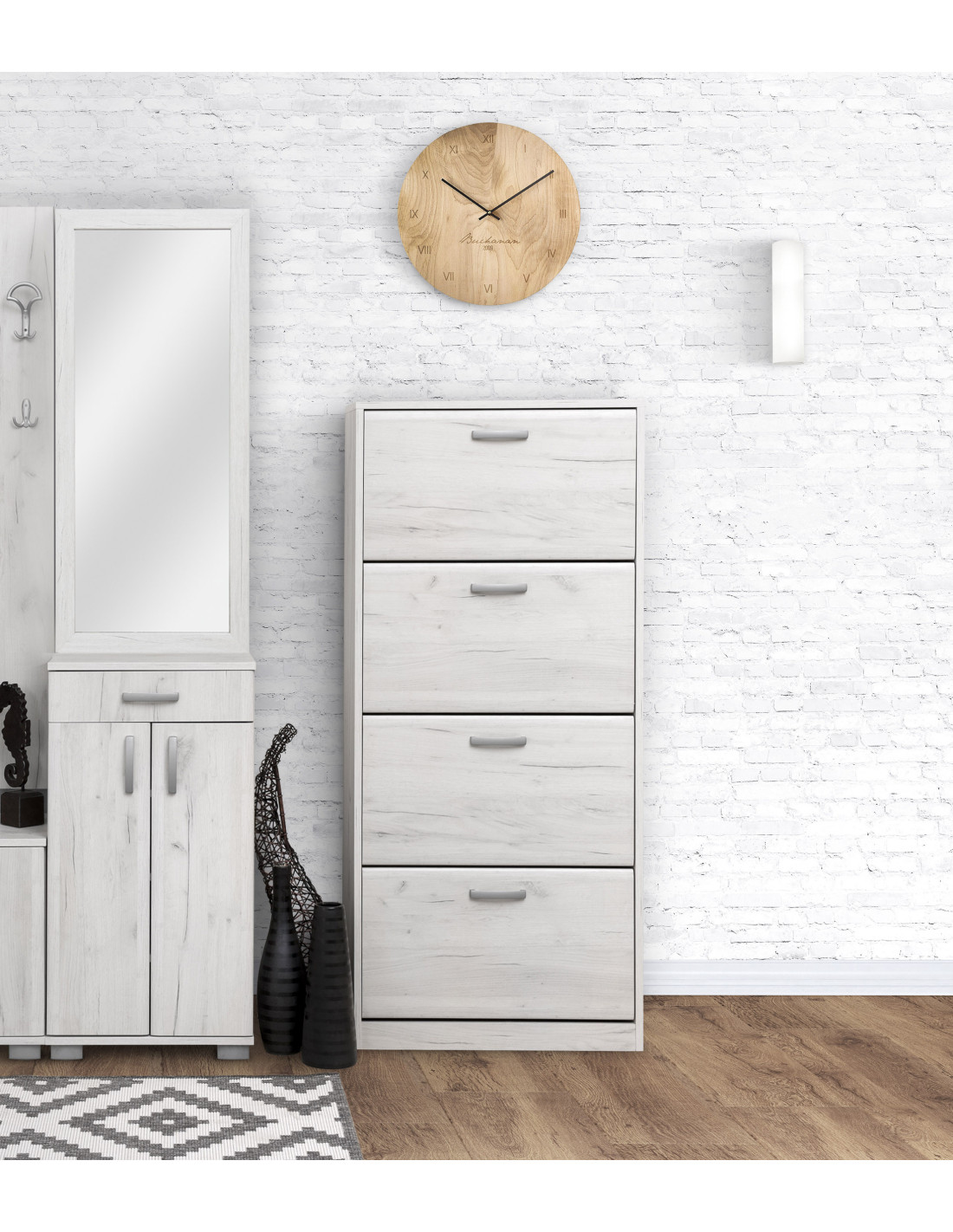 Cipelar Odisej 4V dodaje moderan zaokret pohrani cipela. Ladice za cipele imaju metalne ručke i otvaraju se prema Kip sustavu. Skladan izgled, mekana završna obrada fronti ladica i dimenzije stalka za cipele uklopit će se u svaki dodatni element vašeg hodnika, a može se koristiti i kao zaseban dio.