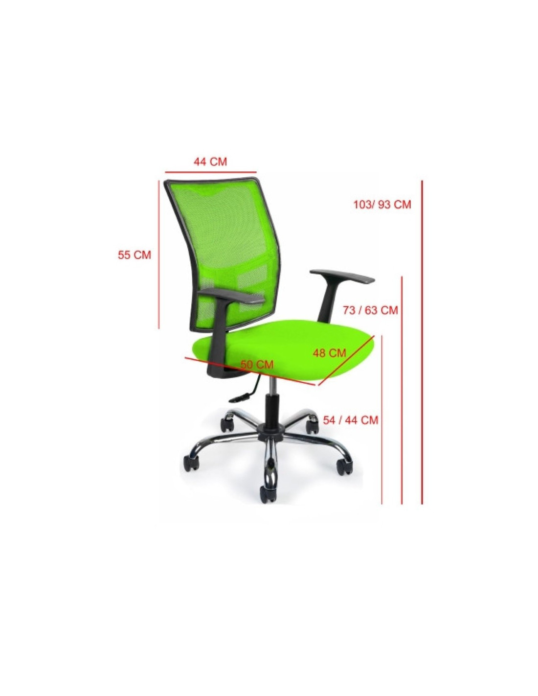 Ergonomska uredska stolica, presvučena kvalitetnom mrežastom tkaninom. Stolica je dostupna u 2 boje. Okretna je i podesiva po visini. Sjedalo ima unutrašnju pjenu. Stolica je opremljena crnim, fiksnim naslonima za ruke. Baza je kromirana, s crnim kotačima. Maksimalna nosivost stolice je 100 kg.