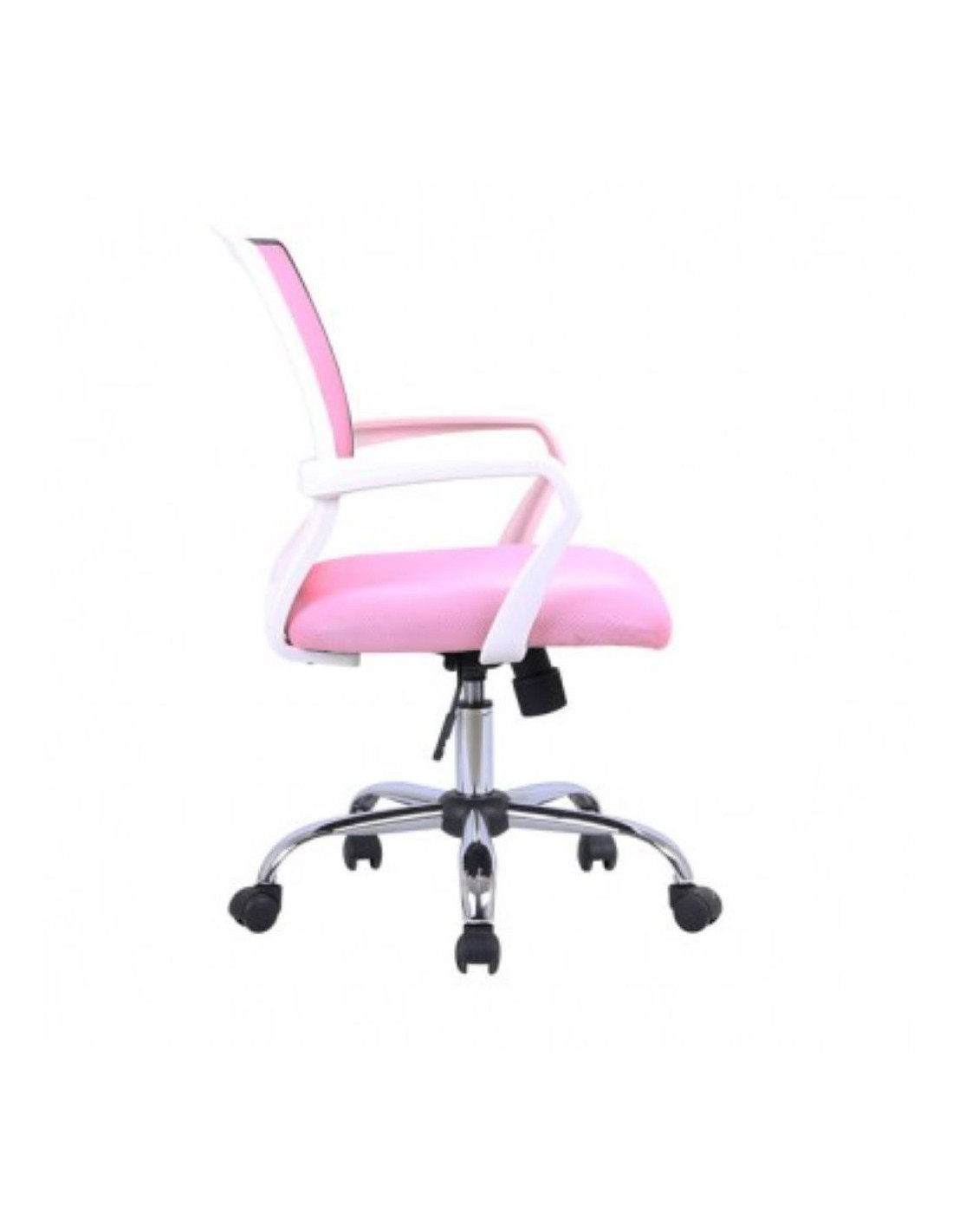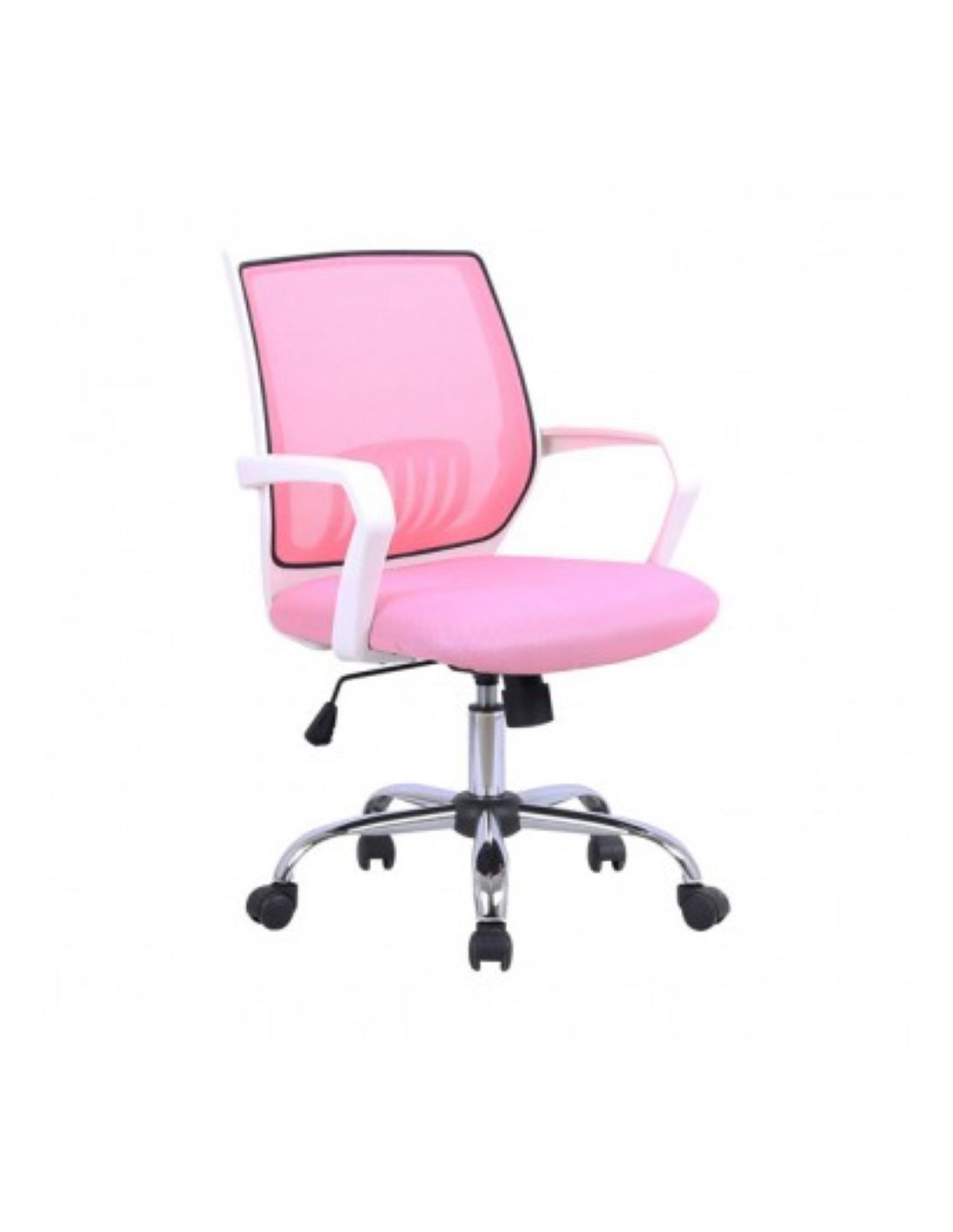 PC stolica modernog izgleda. Naslon je izrađen od prozračne i udobne mrežaste tkanine u kombinaciji s bijelim obrubom i nosačima. Baza je metalna s gumenim kotačima. Rotirajuća je i podesiva po visini. Maks. nosivost je 90 kg. Visina naslona za ruke je od 62-72,5 cm. Visina sjedala je od 44-53,5 cm.