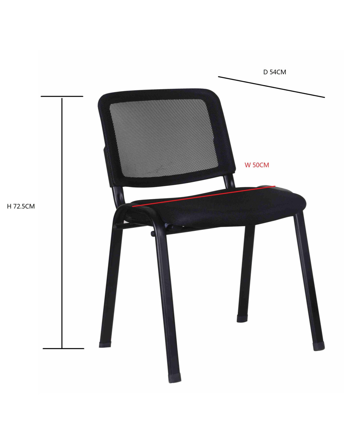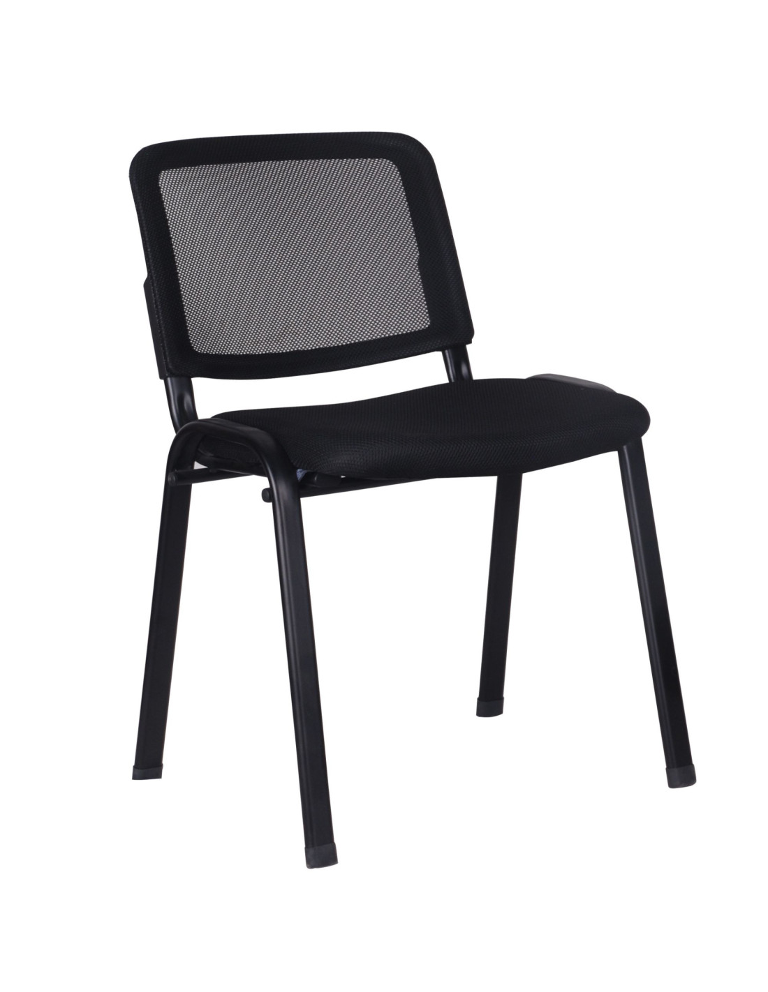 Konferencijska stolica s tapeciranim sjedalom i mrežastim naslonom, dostupna u crnoj boji. S jednostavnim dizajnom, ova stolica je izvrsno rješenje za sjedenje u prostorima za prijeme, sobama za sastanke ili za goste u bilo kojem profesionalnom okruženju. Naslon je tapeciran mrežastom tkaninom koja omogućuje protok zraka, čime se održava svježina čak i u vrućim i vlažnim prostorijama, tako da korisnici ostaju udobni čak i tijekom duljeg sjedenja. Dizajn stolice bez naslona za ruke omogućuje veću fleksibilnost u položaju sjedenja. Ovaj otvoreni dizajn, zajedno s mogućnošću slaganja više stolica zajedno, također pomaže u uštedi prostora kada se stolica ne koristi.