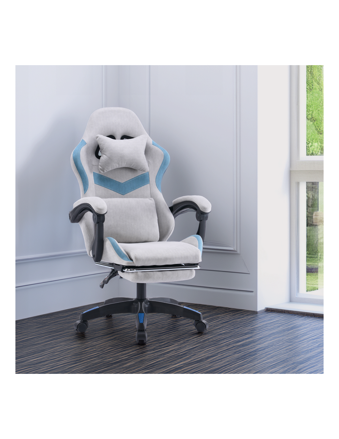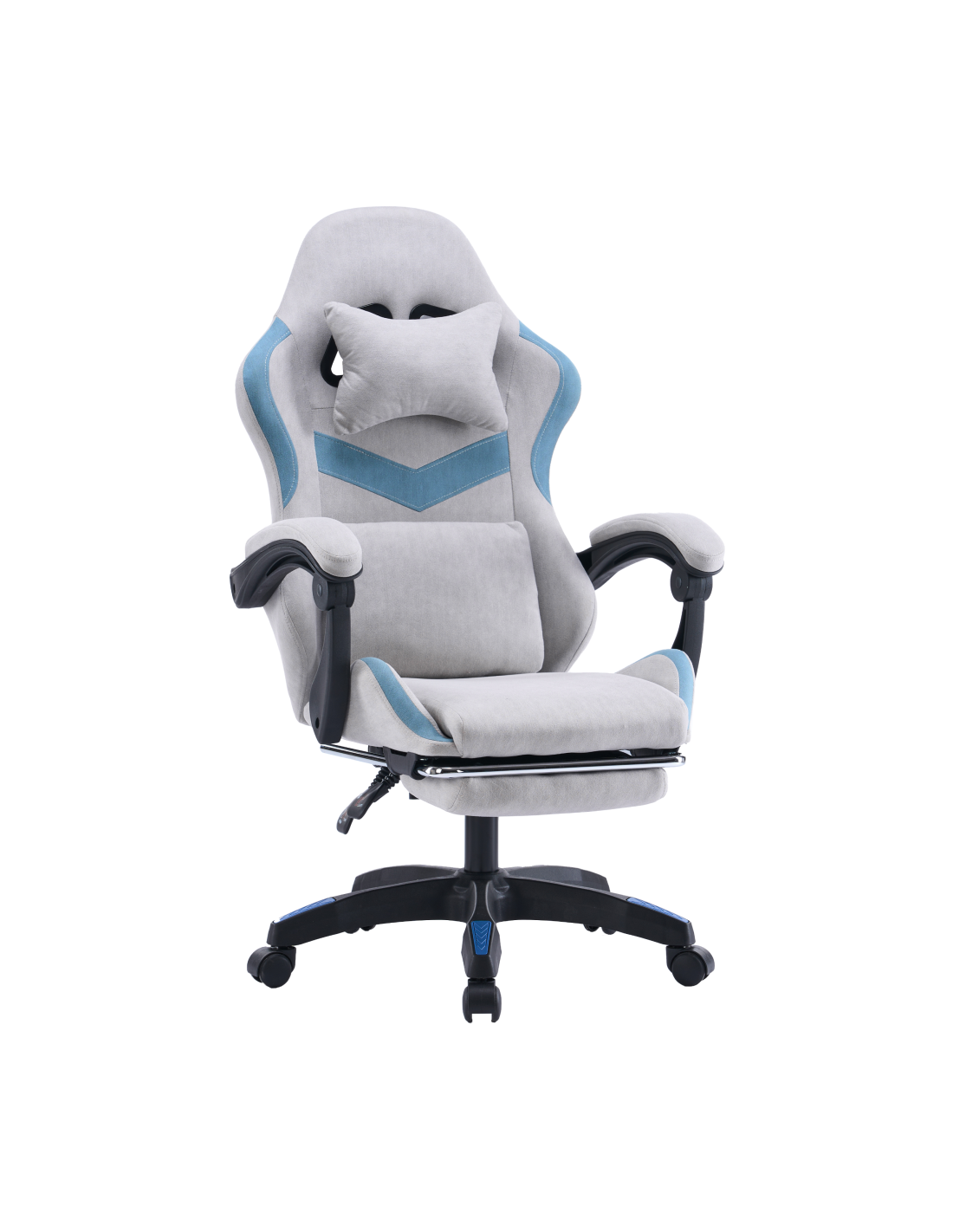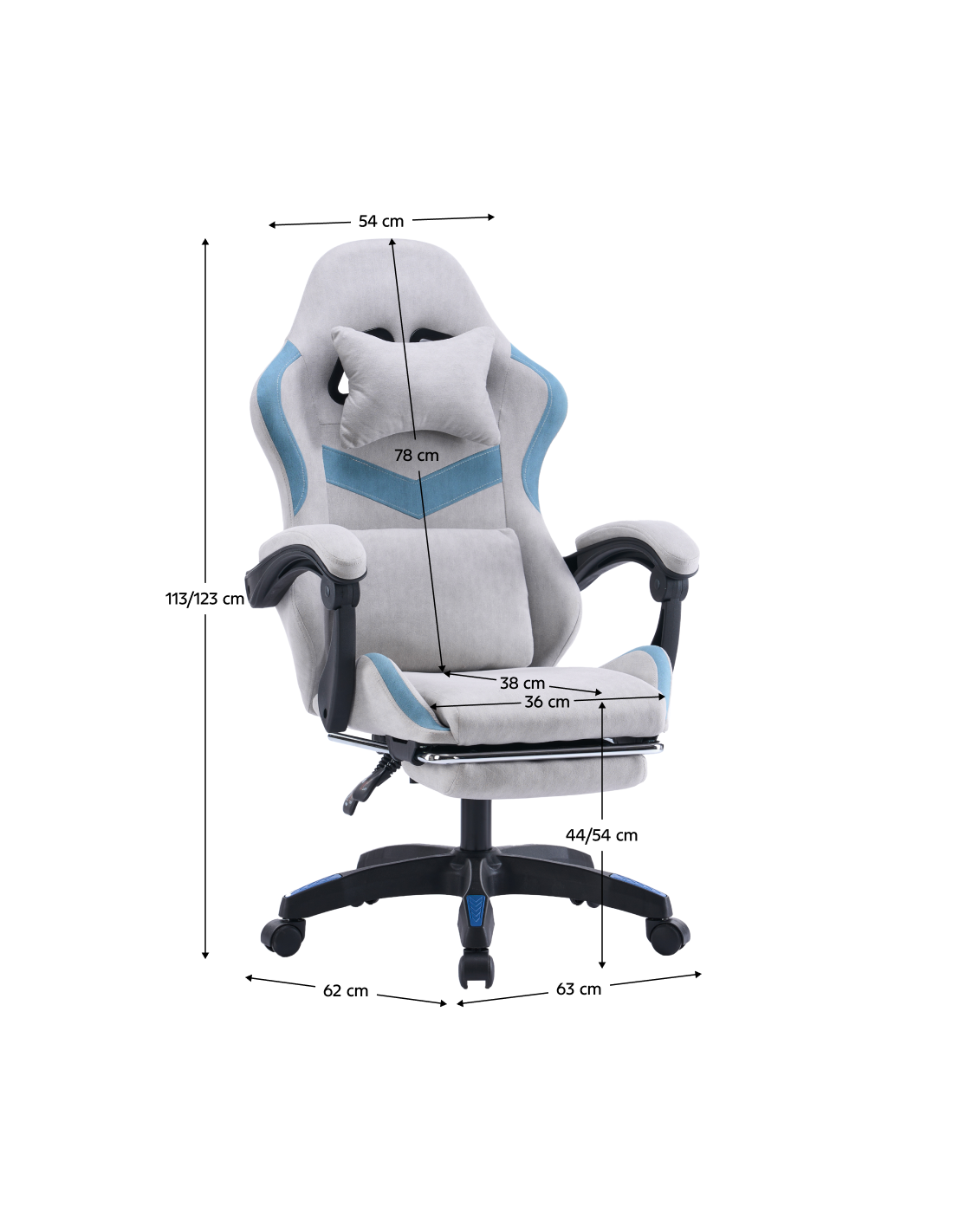 ZODIA je PC stolica koja kombinira gaming karakter s elegancijom modernog ureda. Dizajnirana je kako bi pružila maksimalnu udobnost čak i tijekom dugih sati sjedenja. Zahvaljujući ergonomskom obliku, podesivom naslonu za leđa i podesivom naslonu za glavu, lako možete pronaći idealan položaj za rad i opuštanje. Podstavljeni nasloni za ruke pružaju udobnost za vaše ruke, dok vam produljiva baza omogućuje istezanje nogu i stjecanje nove energije. Funkcija ljuljanja i okretanja je nešto što se podrazumijeva. Glatko kretanje po prostoriji osigurano je univerzalnim kotačima prikladnim za meke i tvrde površine. Stabilnost je podržana čvrstom plastičnom bazom s pet krakova. Kombinacija boja sive, plave i crne izgleda samouvjereno, a istovremeno diskretno, što ZODIA-u čini elegantnim elementom svakog radnog ili prostora za igru.