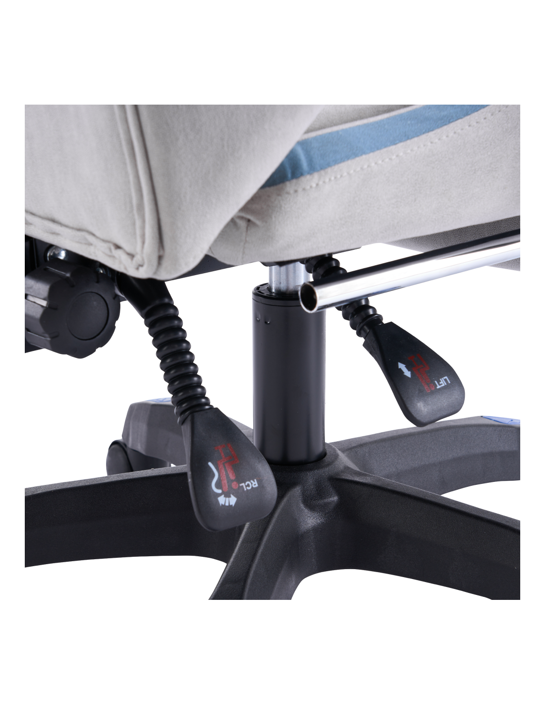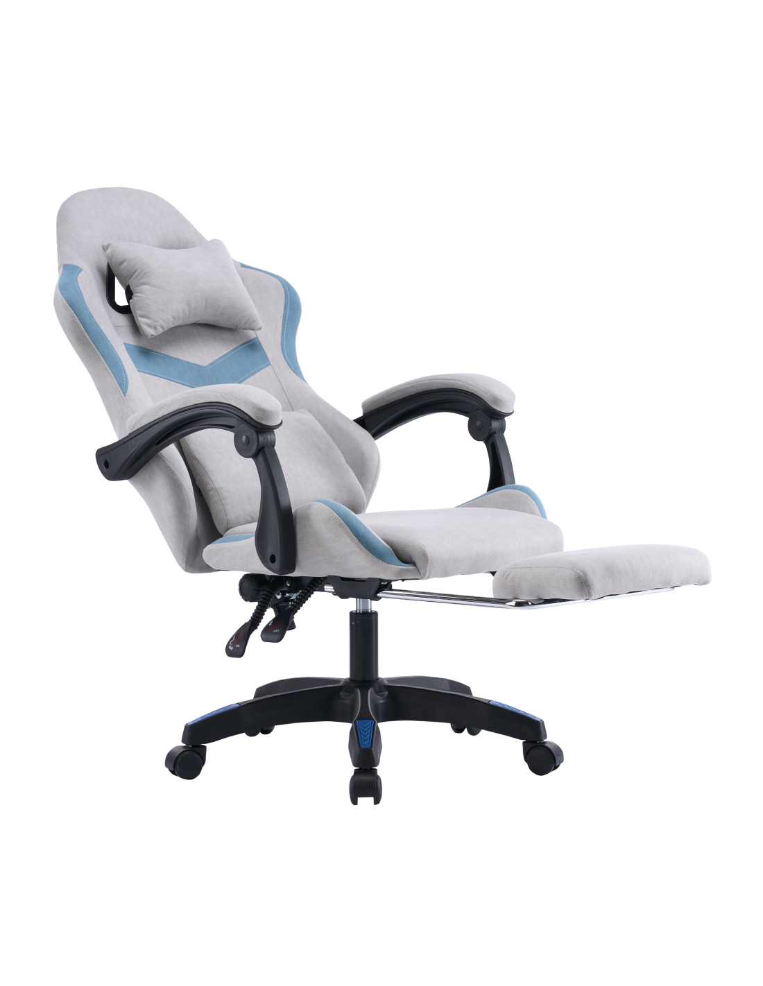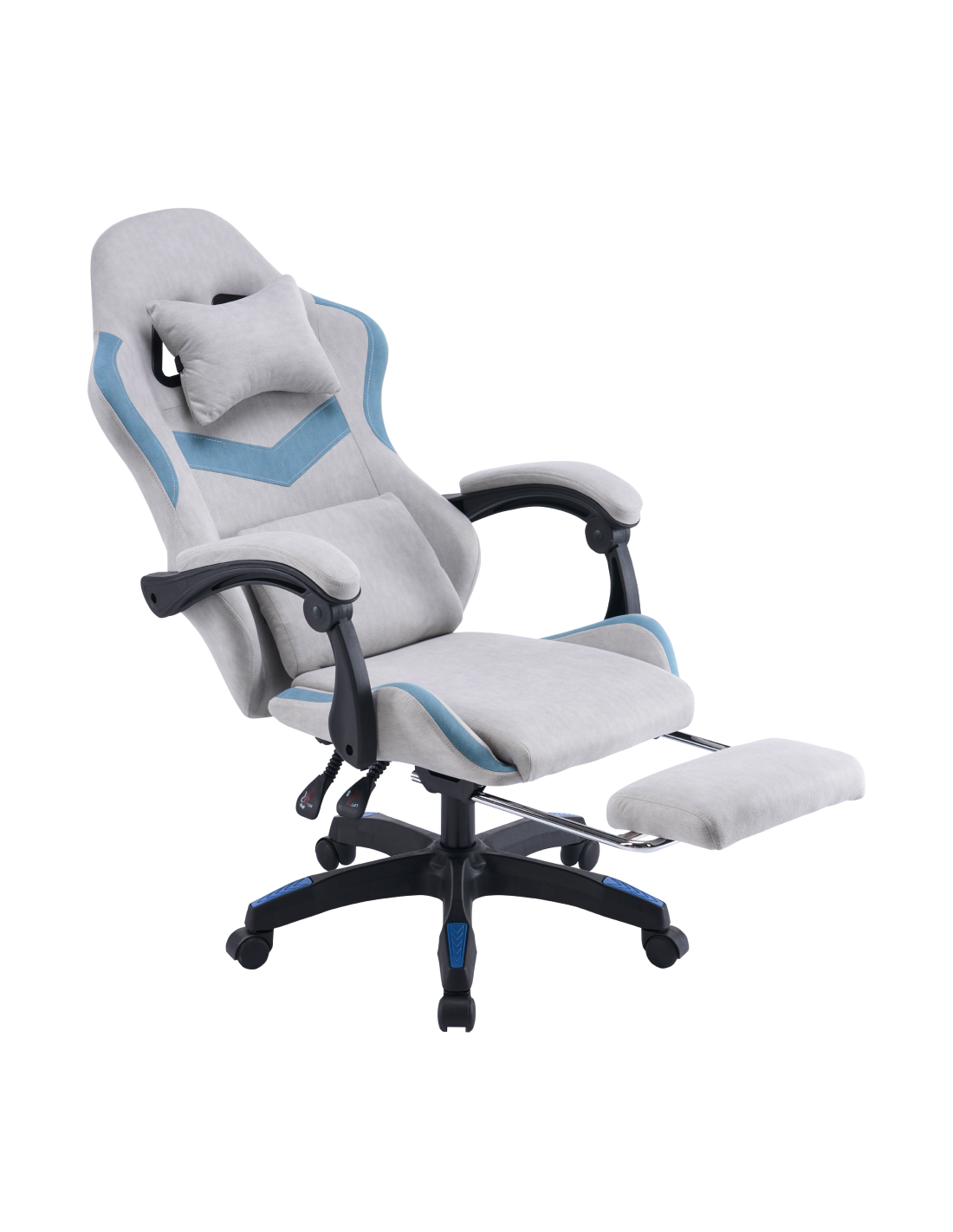 ZODIA je PC stolica koja kombinira gaming karakter s elegancijom modernog ureda. Dizajnirana je kako bi pružila maksimalnu udobnost čak i tijekom dugih sati sjedenja. Zahvaljujući ergonomskom obliku, podesivom naslonu za leđa i podesivom naslonu za glavu, lako možete pronaći idealan položaj za rad i opuštanje. Podstavljeni nasloni za ruke pružaju udobnost za vaše ruke, dok vam produljiva baza omogućuje istezanje nogu i stjecanje nove energije. Funkcija ljuljanja i okretanja je nešto što se podrazumijeva. Glatko kretanje po prostoriji osigurano je univerzalnim kotačima prikladnim za meke i tvrde površine. Stabilnost je podržana čvrstom plastičnom bazom s pet krakova. Kombinacija boja sive, plave i crne izgleda samouvjereno, a istovremeno diskretno, što ZODIA-u čini elegantnim elementom svakog radnog ili prostora za igru.