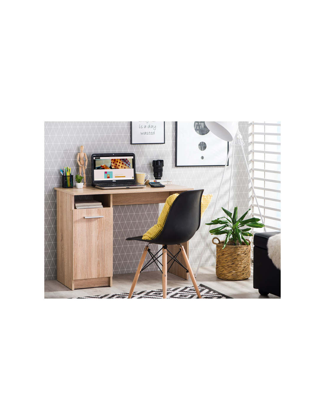 REY računalni stol, u dizajnu hrasta sonoma, praktično je rješenje za opremanje vašeg radnog prostora zahvaljujući skladnom dizajnu i dimenzijama. Ovaj model stola ima otvoreni segment i prednji dio smješten s lijeve strane s pregradnom policom.