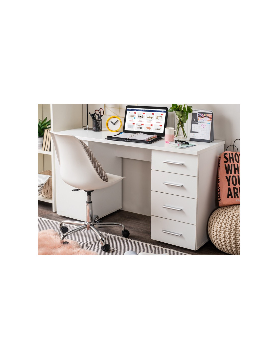 PC stol LIBER u bijeloj boji, osnovni je detalj savršeno funkcionalnog radnog prostora u kojemu sve mora ozračivati redom i skladnom organizacijom. Praktična kompozicija radne površine, sistema ladica i zatvorenog krilnog dijela donosi dovoljno prostora za odlaganje i sortiranje važnih stvari i dokumenata.