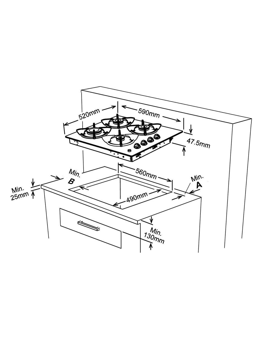 | Visina/ Širina/ Dubina otvora u kuh.elementu: | 49×56 cm |