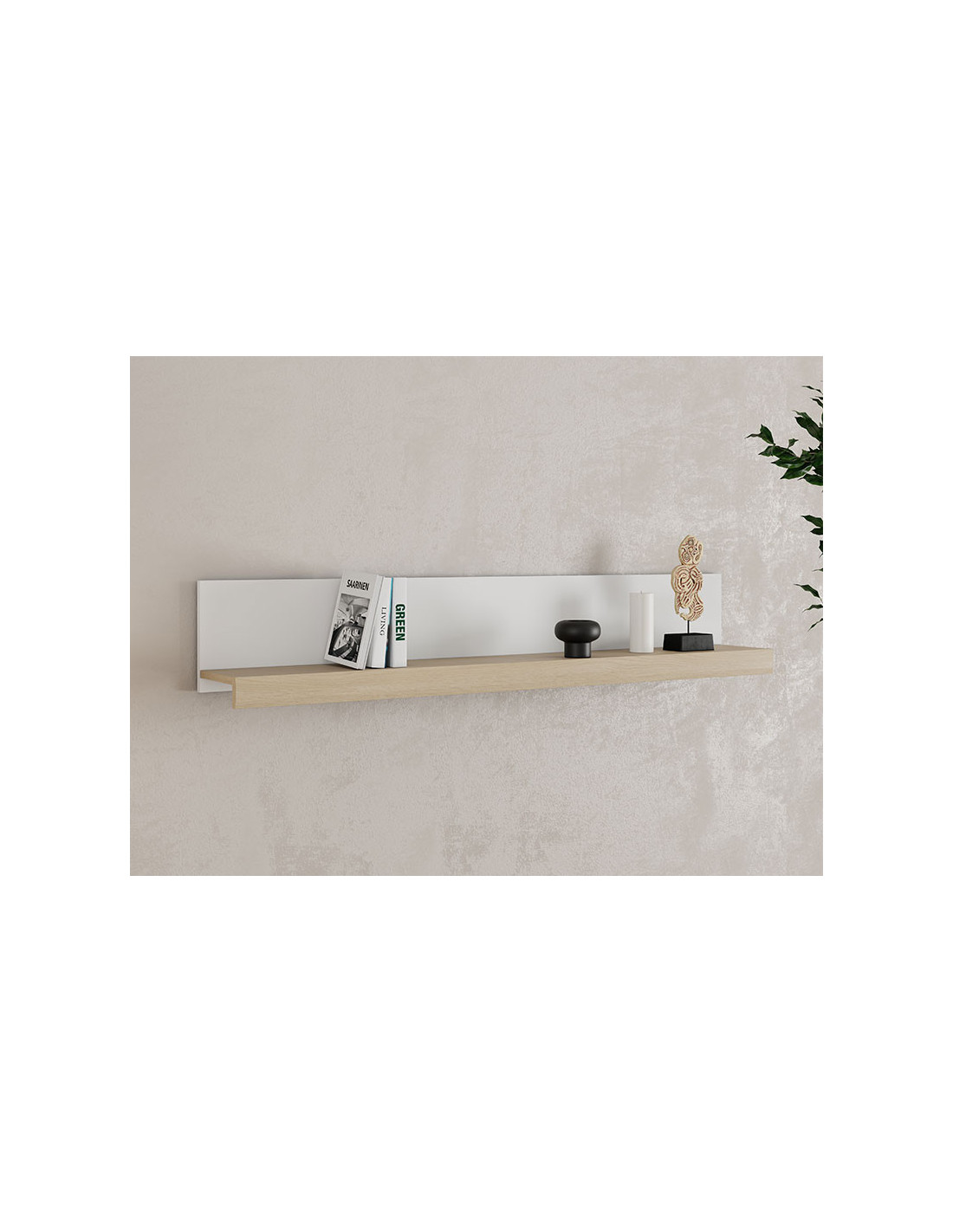 Zidna polica CARLOW ZP jednostavan je i funkcionalan element za opremanje dnevnog boravka. Izrađena je u kombinaciji neprozirno bijelog dekora, svijetlog hrasta i svijetle folije hrasta, što doprinosi modernom i svijetlom izgledu prostora. Pogodna je za izlaganje ukrasnih predmeta ili knjiga te se skladno uklapa s ostalim elementima seta za dnevni boravak CARLOW.