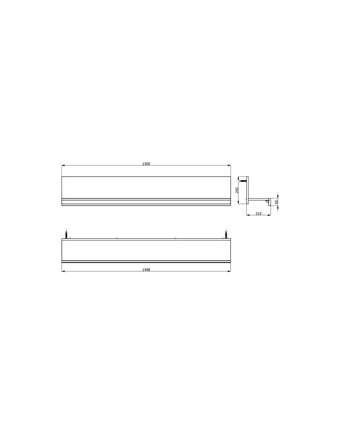 Š 150 cm / D 21,5 cm / V 24 cm