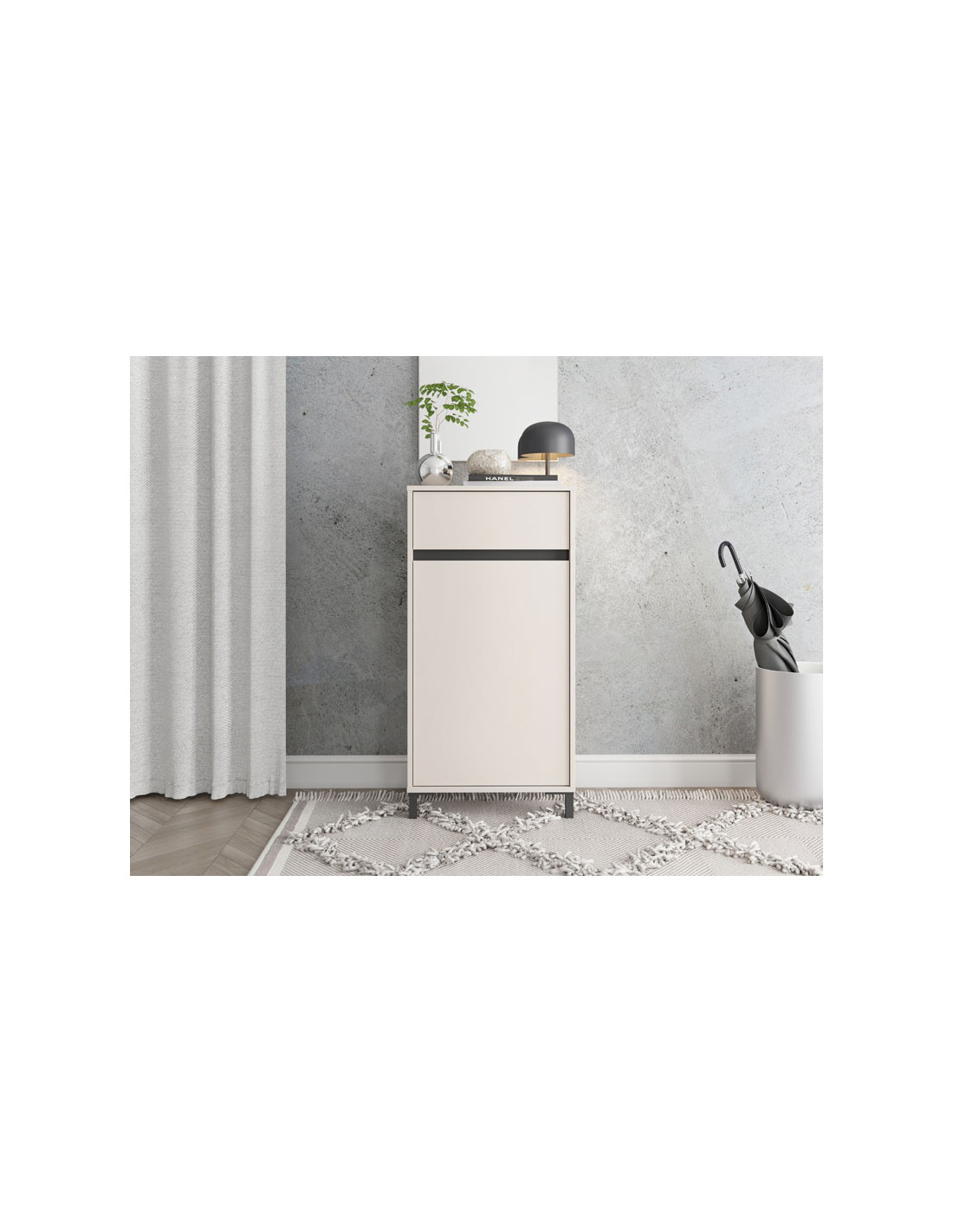 Element predsoblja ARRAN 1K1F, u kašmir dekoru i detaljima izrađenim od crne mat folije, sadrži praktičan zatvoreni dio za odlaganje obuće koji se sastoji od krila sa policama, kao i jednu ladicu.