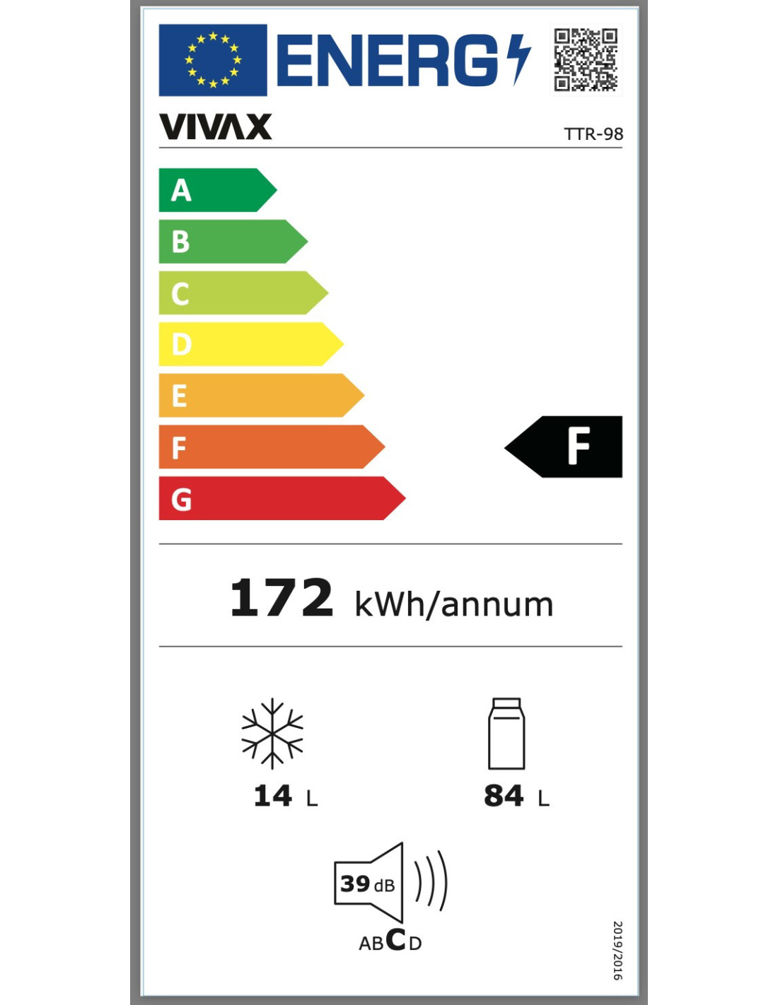 Vrlo praktičan hladnjak i zamrzivač u razini radne plohe Vivax TTR-98, zadovoljit će svakog korisnika koji nema potrebe za spremanjem većih količina hrane. Osim što je štedljiv u potrošnji energije, zauzima i vrlo malo prostora.