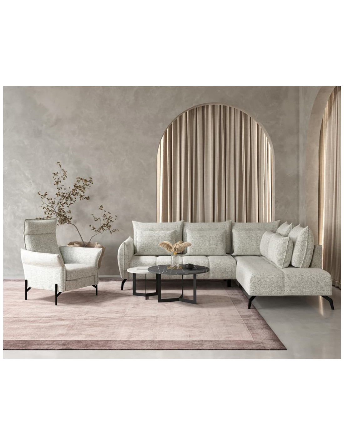 Garnitura Casablanca predstavlja garniture velikih dimenzija, izvrsne kvalitete, udobnosti i modernog dizajna koji je bezvremenski moderan. Ovaj komad namještaja ostaje elegantan u svoj svojoj jednostavnosti pa je savršen u trenucima kada želite nešto osnovno, standardno i udobno, ali i neobično za svoj dnevni boravak.