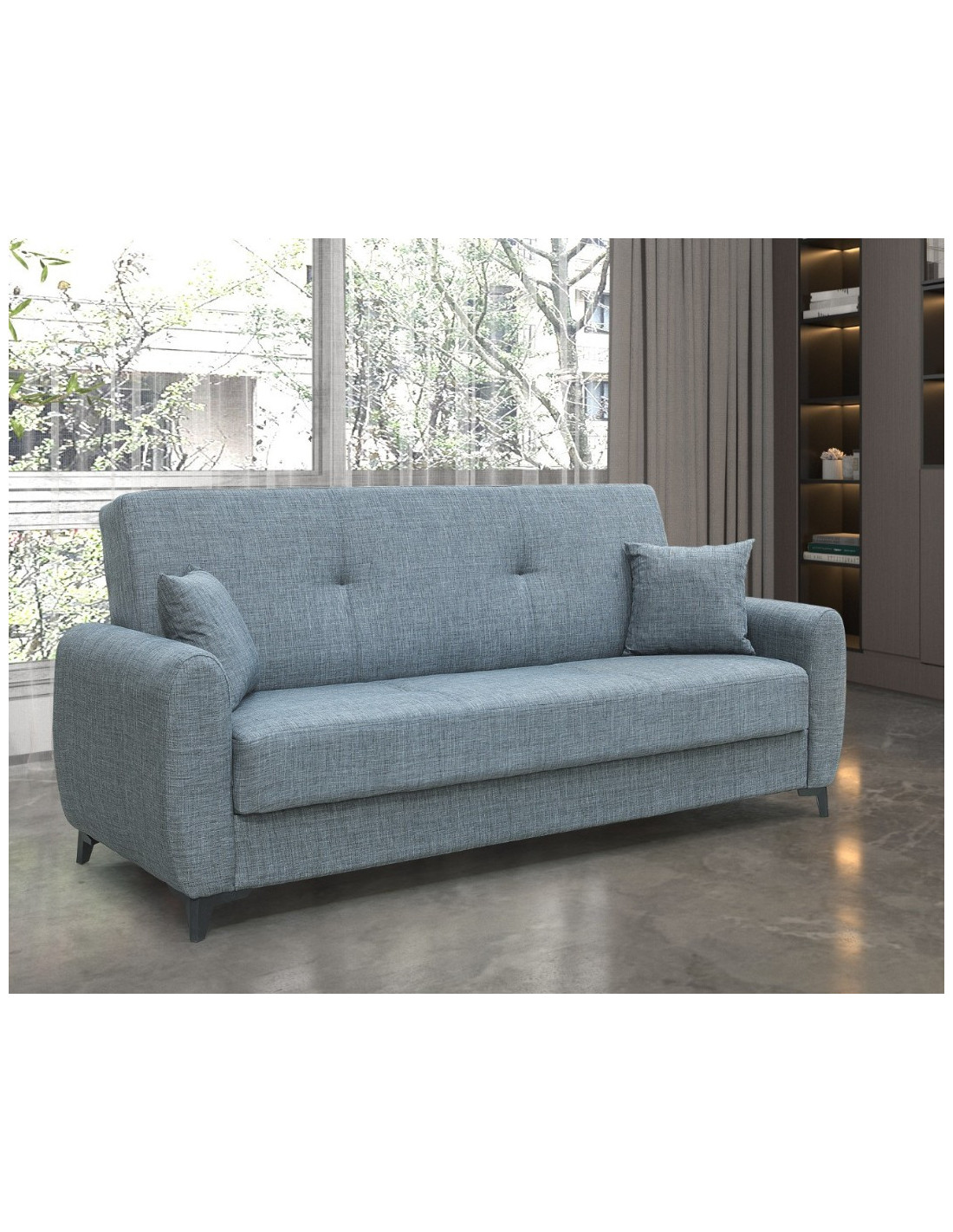 Trosed Best savršen je spoj udobnosti, funkcionalnosti i modernog dizajna, što ga čini idealnim komadom namještaja za vaš dnevni boravak ili prostor za opuštanje. Ova sofa ispunit će sve vaše potrebe za sjedenje, spavanje i odlaganje stvari. Trosjed Best s dimenzijama (225x88x94 cm) pruža prostrano sjedalo za udoban smještaj više osoba. Materijal za punjenje uključuje meku spužvu i žičanu jezgru, pružajući vam potporu i udobnost tijekom sjedenja i spavanja. Konstrukcija trosjeda izrađena je od lesonita, sirovog i oplemenjenog iverala, te punog drva, što ga čini stabilnim i izdržljivim. Noge su izrađene od plastike, što daje dodatnu čvrstoću. Trosjed Best ima "klik-klak" mehanizam na rasklapanje, što ga čini vrlo praktičnim za transformaciju u površinu za spavanje.