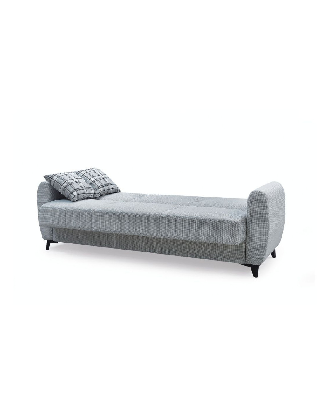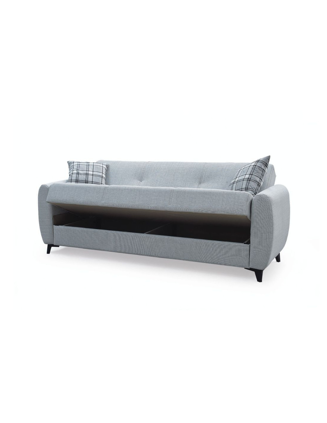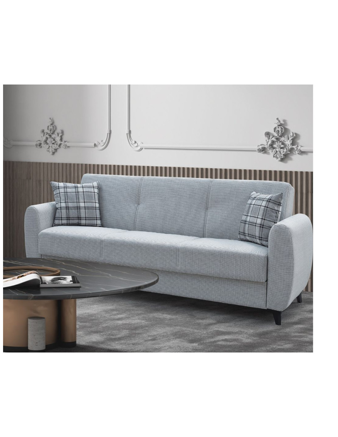 Trosjed Violet izvrsna je kombinacija funkcionalnosti, udobnosti i elegantnog dizajna, što je čini idealnim izborom za vaš dnevni boravak ili prostor za opuštanje. Ova sofa pruža sve što vam je potrebno za udobno sjedenje, spavanje i praktično skladištenje. Svojim dimenzijama (210x75x80 cm) Violet trosjed nudi prostrano sjedište za više osoba. Materijal izrade uključuje lesonit, sirovi i oplemenjeni iveral, kao i puno drvo, što ga čini izuzetno stabilnim i izdržljivim za svakodnevnu upotrebu. Ležeći dio sofe presvučen je kvalitetnom tkaninom, pružajući Vam mekano i udobno mjesto za odmor. Trosjed dolazi i sa "klik-klak" mehanizmom na sklapanje, što ga čini vrlo praktičnim za pretvaranje u površinu za spavanje.