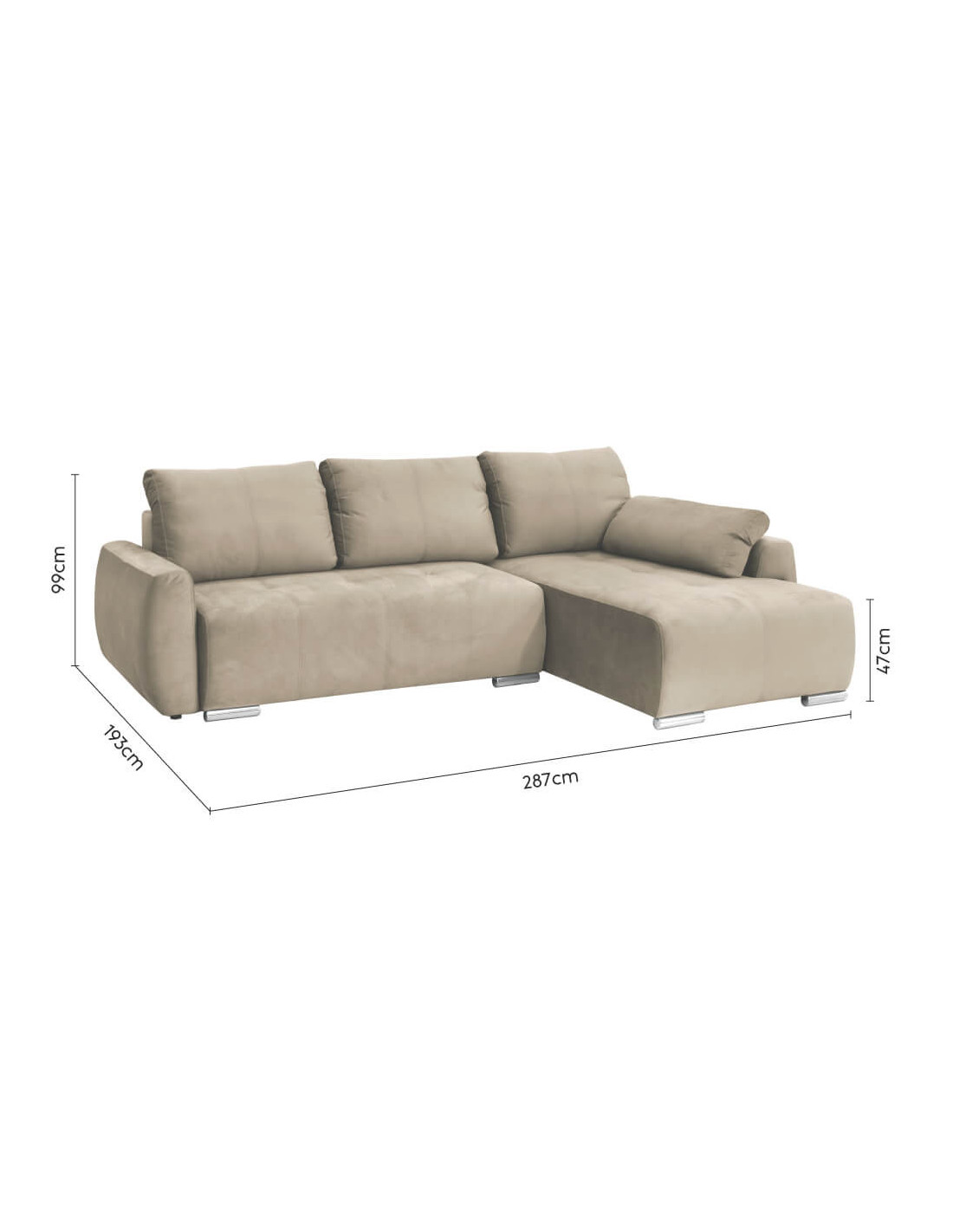 Š 287 cm / D 196 cm / V 76 cm