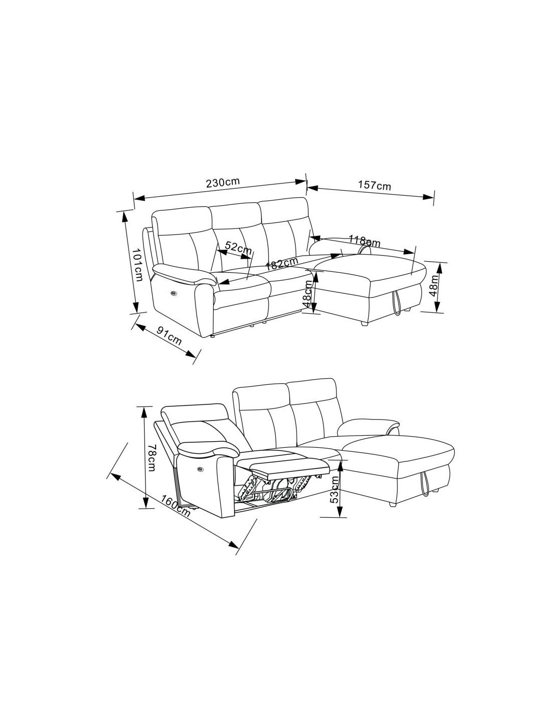 Š 230 cm / D 157 cm / V 101 cm