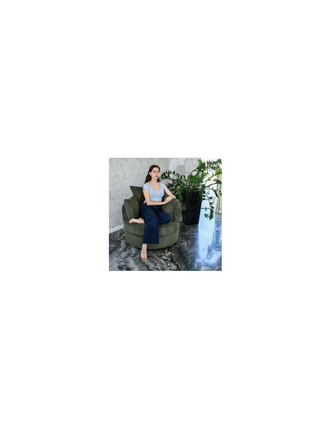 Otkrijte savršenu kombinaciju elegancije i udobnosti uz okretnu fotelju SALTER, koja će vaš interijer podići na novu razinu. Zahvaljujući tamnozelenoj tkanini, izgleda bezvremenski i istovremeno ugodno. Stabilnost je osigurana čvrstom konstrukcijom izrađenom od masivnog drva, šperploče i metala. Stolica se može rotirati do 360 stupnjeva, tako da je možete lako prilagoditi po potrebi. Svaki detalj stolice dizajniran je s naglaskom na kvalitetu i udobnost, od nježno oblikovanih linija do pažljivo odabranog punjenja od pjene od 25 W, koje pruža luksuzno sjedenje čak i tijekom duljeg opuštanja. Osjećaj udobnosti umnožen je praktičnim jastucima. Fotelja SALTER stvorena je za opuštanje, čitanje i ležerno gledanje televizije u dnevnoj sobi, uredu ili spavaćoj sobi.
