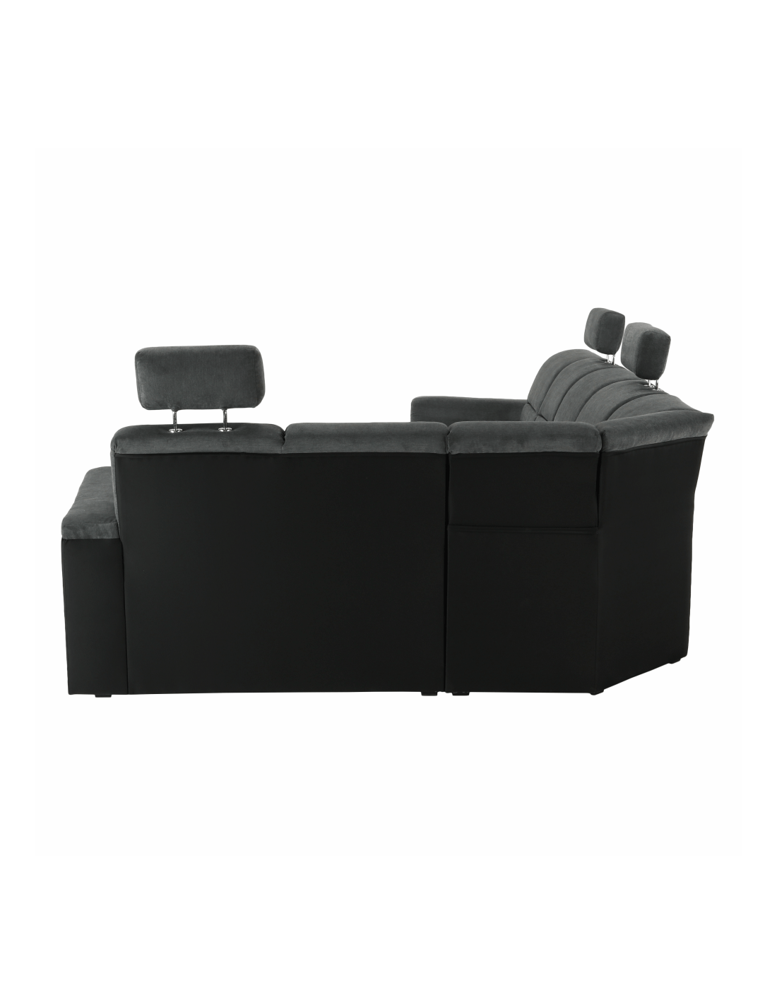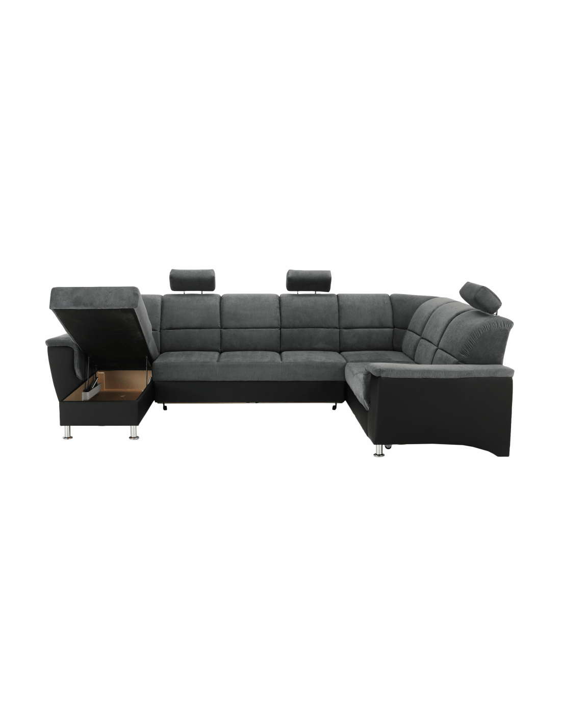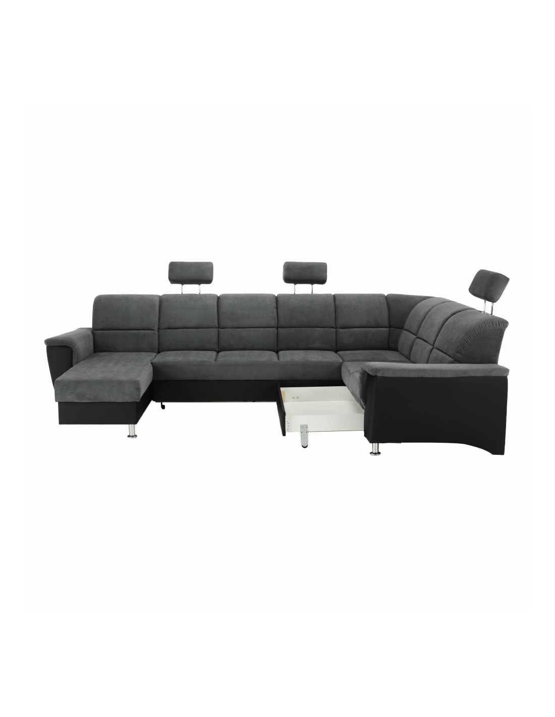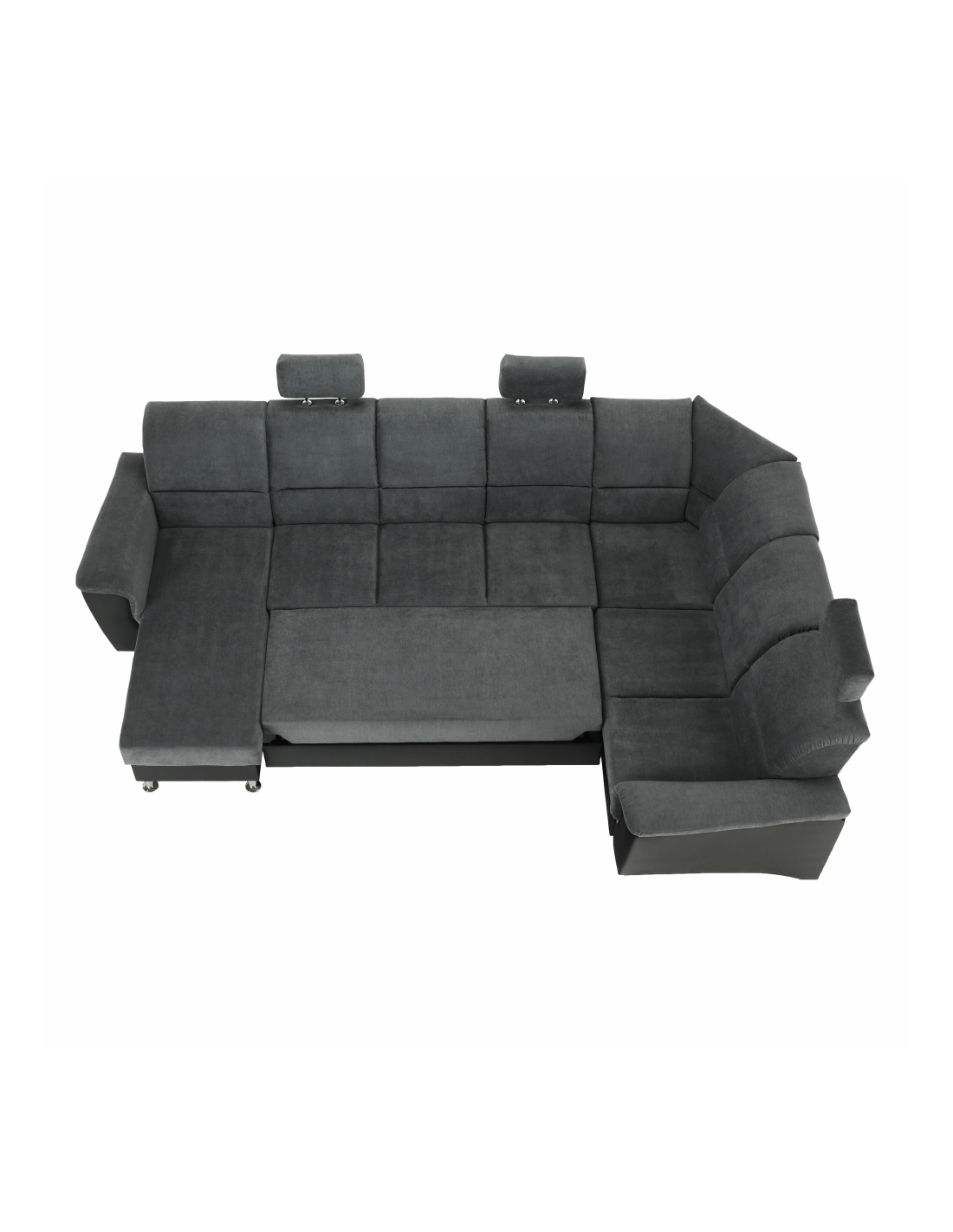 Pogledajte izbliza sofu SANTIAGO. Neponovljiv izgled, jedinstveni dizajn i zajamčena udobnost. Naš dragulj među sofama može se pohvaliti svime time. Zahvaljujući jedinstvenom dizajnu u tamno sivoj Matrix tkanini i crnoj eko koži, lako će postati dio svakog dnevnog boravka. Sofa je u popularnom U-obliku. Funkcija sklapanja i skriven prostor za pohranu također je čine iznimnom. SANTIAGO se rasklapa pomoću ručnog sustava, tako da ne treba puno truda za rasklapanje. U osnovi, rasklapate je s dva poteza. Prvim potezom podižete i pomičete sjedalo prema naprijed. Drugim preklapate naslon i dobivate prostor za spavanje. Posebno oblikovani podesivi nasloni za glavu također će vam pružiti maksimalno opuštanje. Možete ih nagnuti naprijed ili natrag ovisno o tome koliko vam je udobno. Zahvaljujući činjenici da je potpuno tapecirana, možete je postaviti bilo gdje u prostoru i pustiti da se njena ljepota ističe sa svake strane. Punjenje od falista opruge i pur pjene također će doprinijeti savršenom opuštanju. Garnitura SANTIAGO je upravo ono što tražite. Jedinstvena s atraktivnim dizajnom i preciznom izradom.