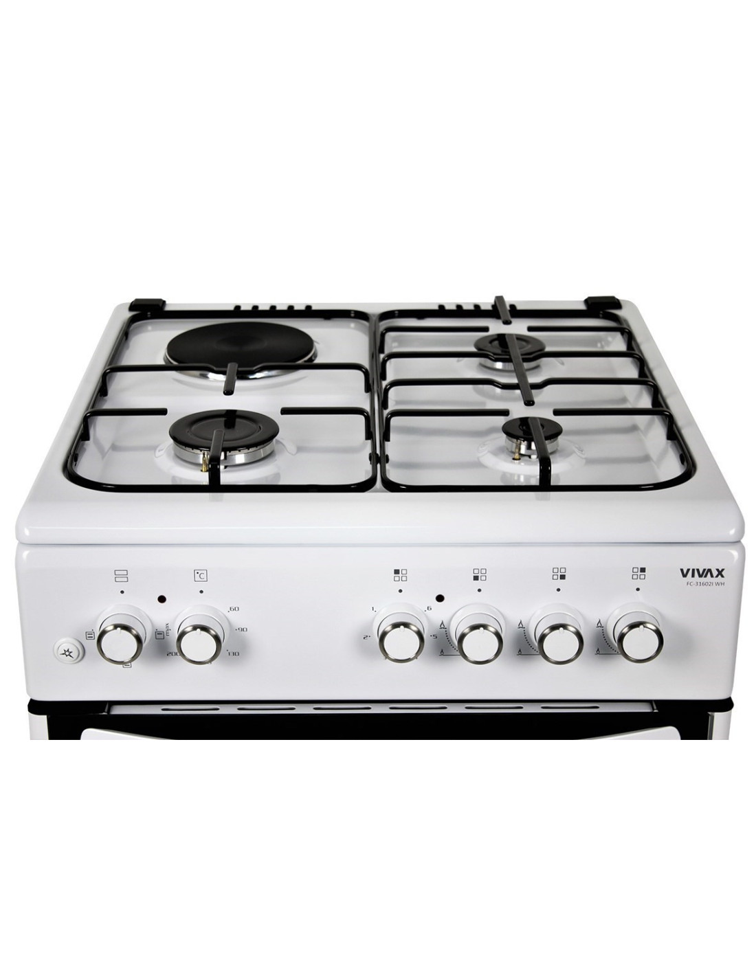 FC-31602I WH je samostojeći plinsko-električni štednjak s jednom strujnom i tri plinske ploče. Karakteriziraju ga jedna rešetka, jedan pladanj i termostat. Ima mogućnost vađenja untarnjeg stakla radi lakšeg čišćenja. Dimenzije plohe ovog modela su 60x85x60 cm.