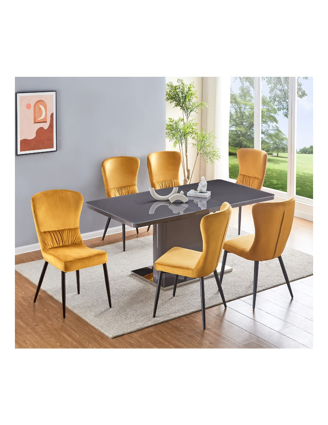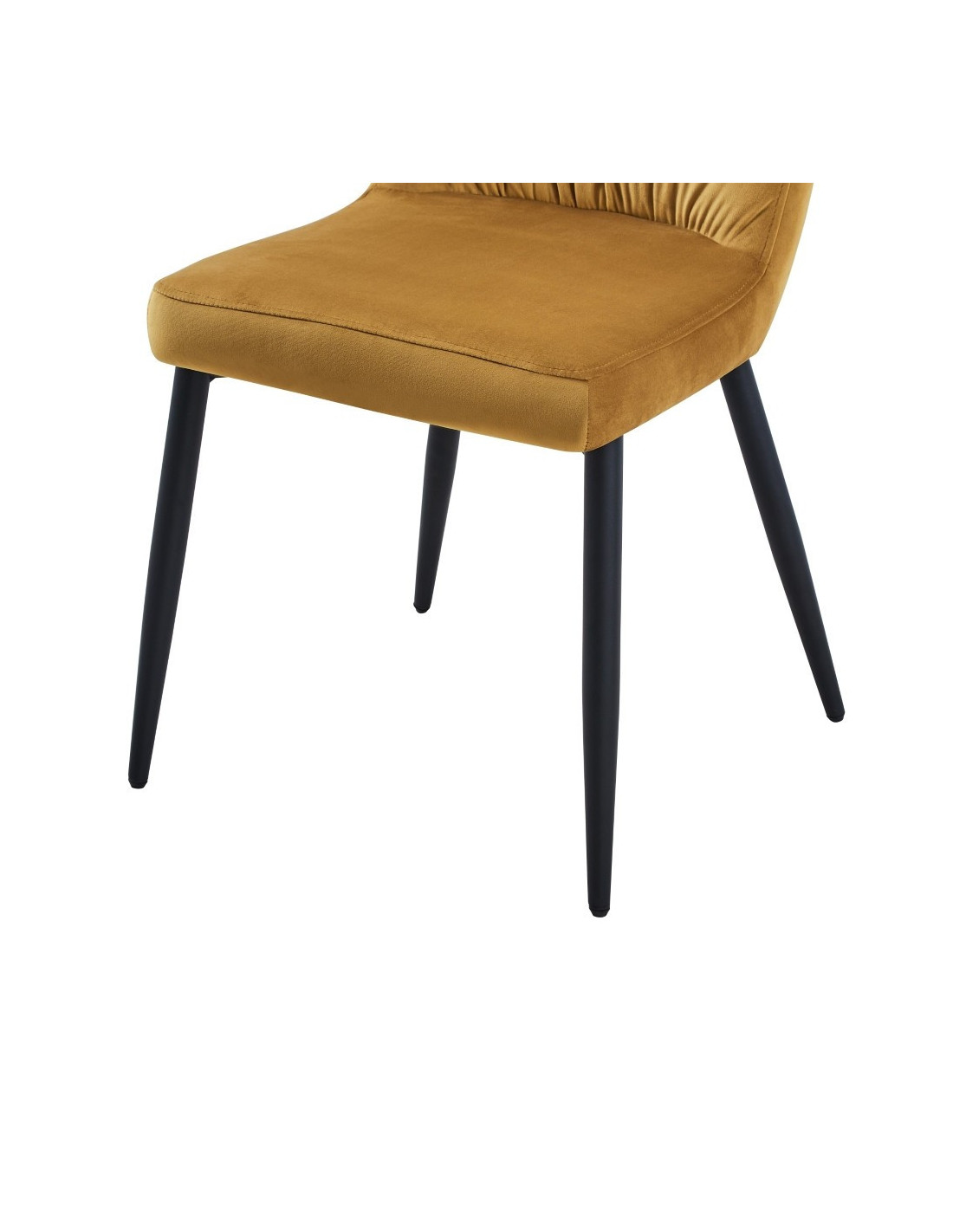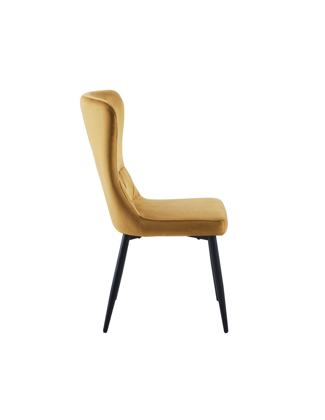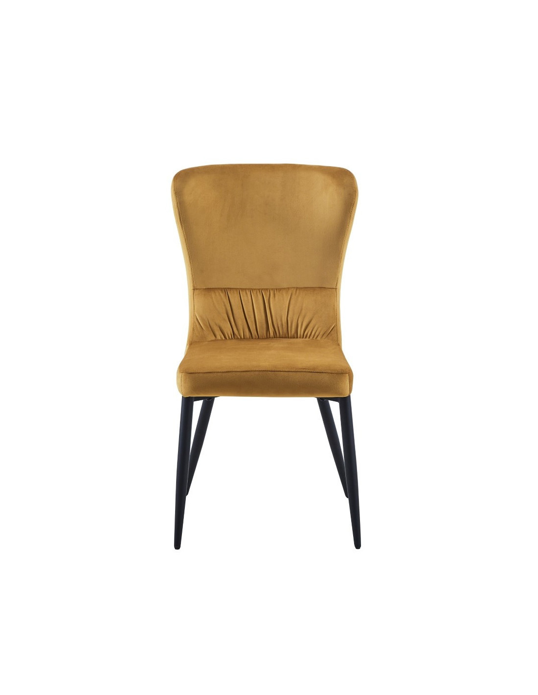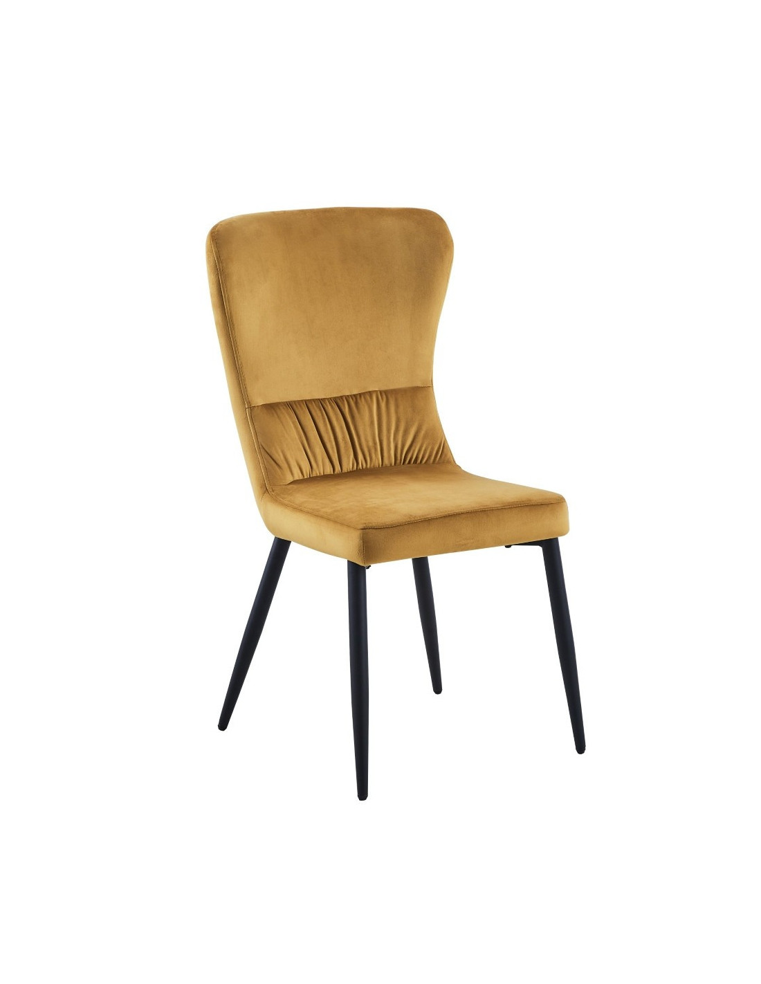 Moderna blagovaonska stolica sa širokim naslonom koja će odlično izgledati u vašem domu. Debelo je podstavljena mekom tkaninom i nježno nabrana duž naslona. Dizajn bez naslona za ruke pruža dodatni prostor za različite položaje sjedenja. Četveronožna baza izrađena je od metala i plastificirana u crnoj boji za bolju zaštitu. Maksimalna nosivost stolice je 120 kg.