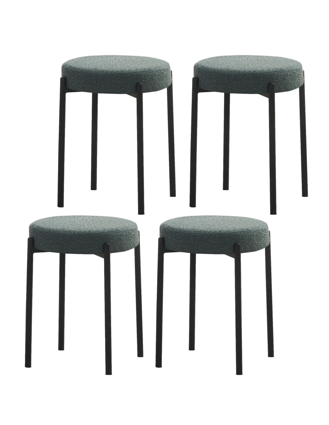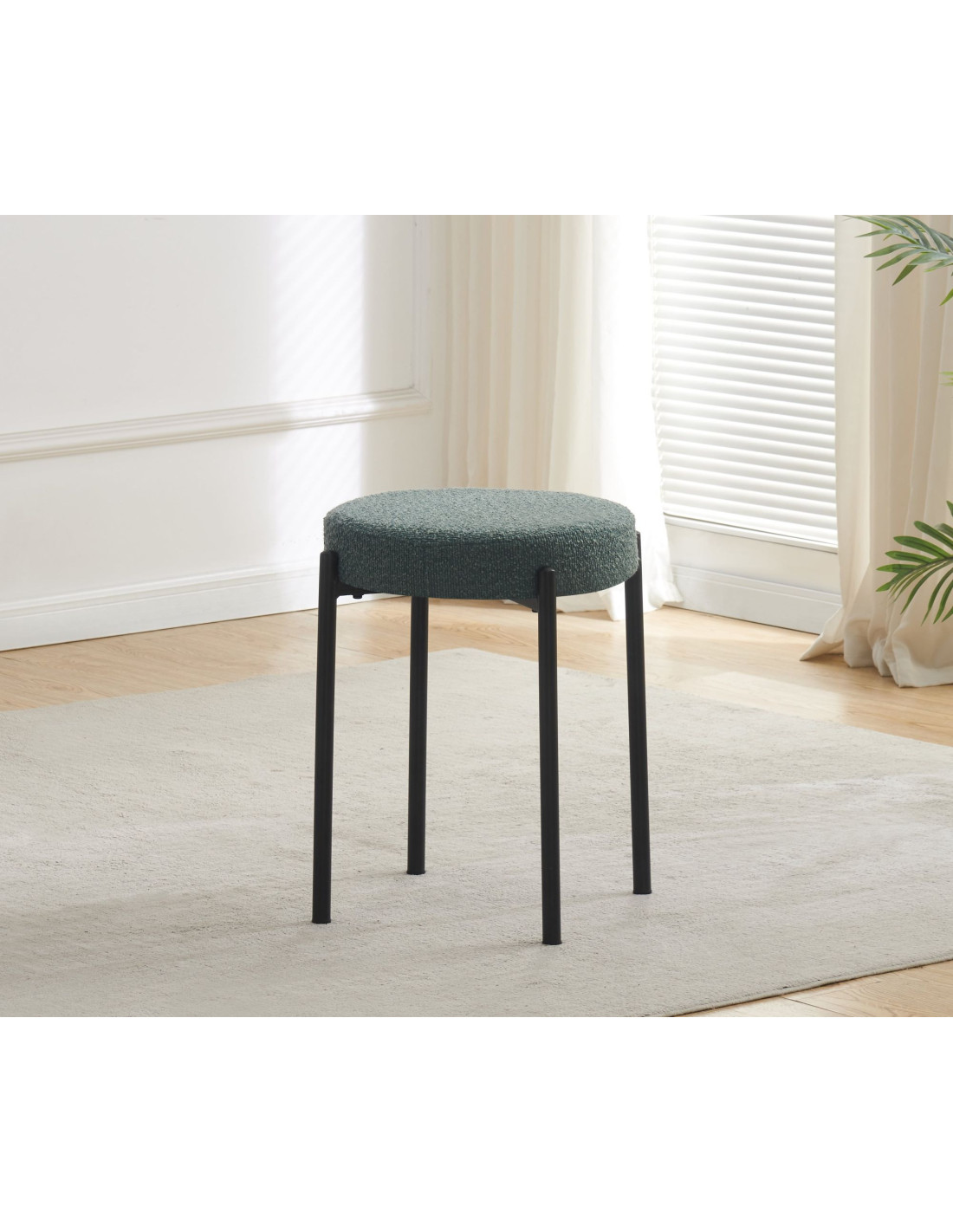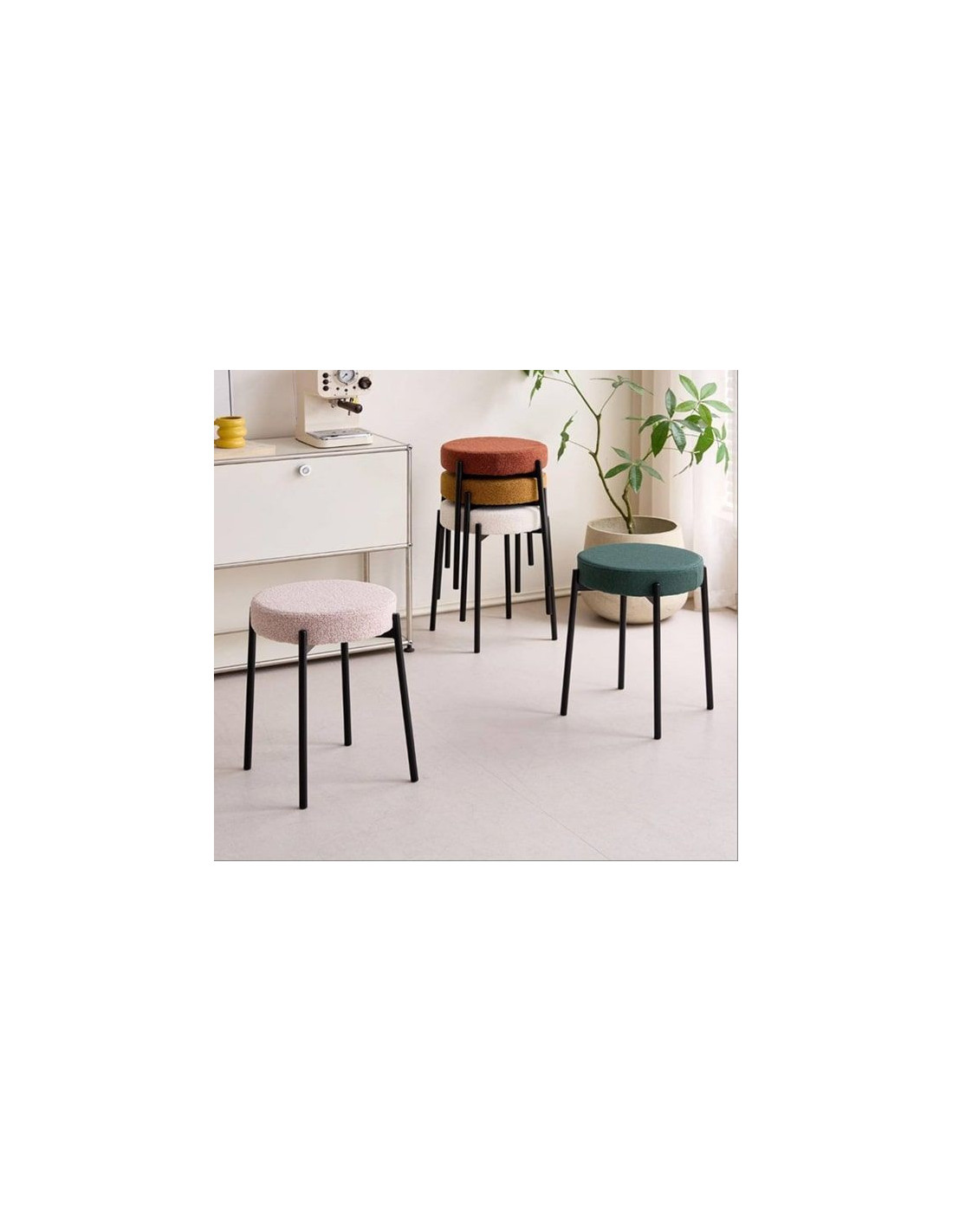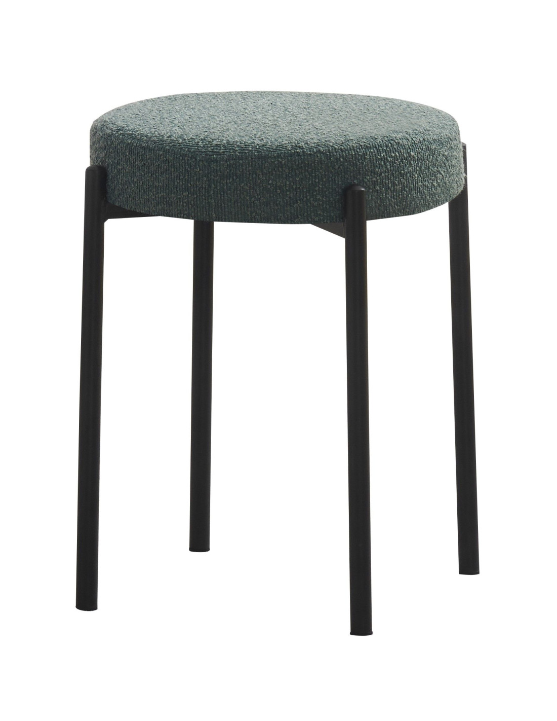 Tapecirana stolica za slaganje dizajnirana za fleksibilnu upotrebu u kuhinjama, blagovaonicama, kafićima ili drugim višenamjenskim prostorima. Kada se ne koristi, više stolica može se složiti zajedno kako bi zauzele manje prostora. Sjedalo je tapecirano tkaninom, dostupnom u nekoliko boja - svijetlo sivoj, sivoj te zelenoj, što olakšava usklađivanje s različitim stilovima interijera. Tapeciranje pruža meku površinu koja povećava udobnost sjedenja u usporedbi s tvrđim sjedalima, a istovremeno stolici daje sofisticiraniji izgled unatoč minimalističkom dizajnu s izloženom metalnom bazom. Sjedalo ima promjer 37,5 cm i visinu 49 cm. Stolica se isporučuje potpuno sastavljena, što omogućuje trenutnu upotrebu bez dodatnog alata ili opreme. Ispod sjedala nalazi se metalni okvir s crnim praškastim premazom za izdržljivu, blago teksturiranu površinu koja poboljšava izdržljivost i otpornost na ogrebotine, a istovremeno smanjuje vidljivost otisaka prstiju i malih mrlja. Okvir se sastoji od tankih, ravnih nogu postavljenih blizu oboda sjedala, što stolici daje dobru stabilnost.