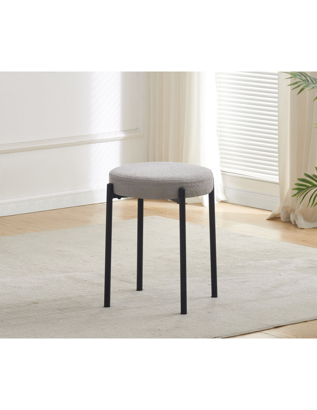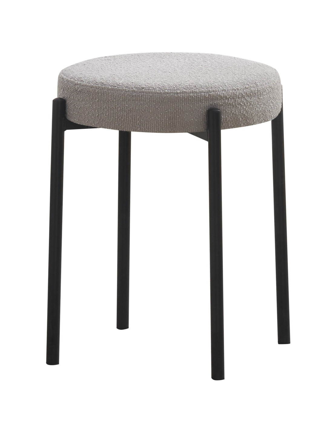 Tapecirana stolica za slaganje dizajnirana za fleksibilnu upotrebu u kuhinjama, blagovaonicama, kafićima ili drugim višenamjenskim prostorima. Kada se ne koristi, više stolica može se složiti zajedno kako bi zauzele manje prostora. Sjedalo je tapecirano tkaninom, dostupnom u nekoliko boja - svijetlo sivoj, sivoj te zelenoj, što olakšava usklađivanje s različitim stilovima interijera. Tapeciranje pruža meku površinu koja povećava udobnost sjedenja u usporedbi s tvrđim sjedalima, a istovremeno stolici daje sofisticiraniji izgled unatoč minimalističkom dizajnu s izloženom metalnom bazom. Sjedalo ima promjer 37,5 cm i visinu 49 cm. Stolica se isporučuje potpuno sastavljena, što omogućuje trenutnu upotrebu bez dodatnog alata ili opreme. Ispod sjedala nalazi se metalni okvir s crnim praškastim premazom za izdržljivu, blago teksturiranu površinu koja poboljšava izdržljivost i otpornost na ogrebotine, a istovremeno smanjuje vidljivost otisaka prstiju i malih mrlja. Okvir se sastoji od tankih, ravnih nogu postavljenih blizu oboda sjedala, što stolici daje dobru stabilnost.