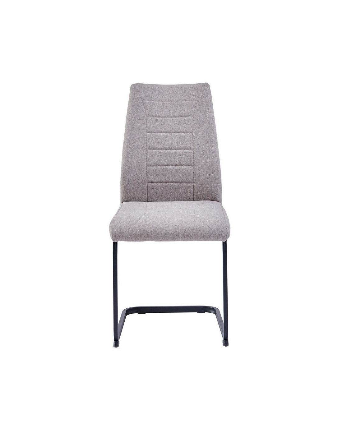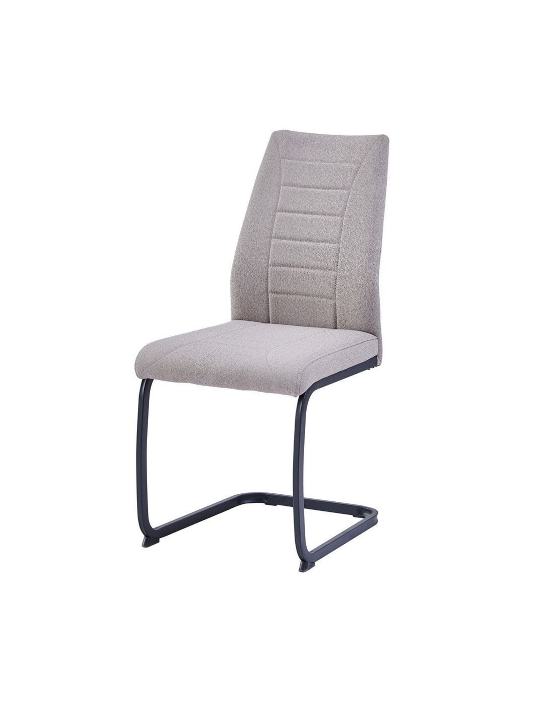 Moderna blagovaonska stolica, ergonomskog dizajna i metalne baze. Sjedalo i naslon stolice presvučeni su mekom tkaninom, prošiveni ukrasnim šavovima i ispunjeni pjenom kako bi se osigurala udobnost čak i pri duljem sjedenju. Visina sjedala je 48 cm od poda. Konzolna baza stolice izrađena je od metalnih cijevi, dimenzija 1,5x2,5 cm, i praškasto je obojena u mat crno kako bi se metal bolje zaštitio od utjecaja okoline.