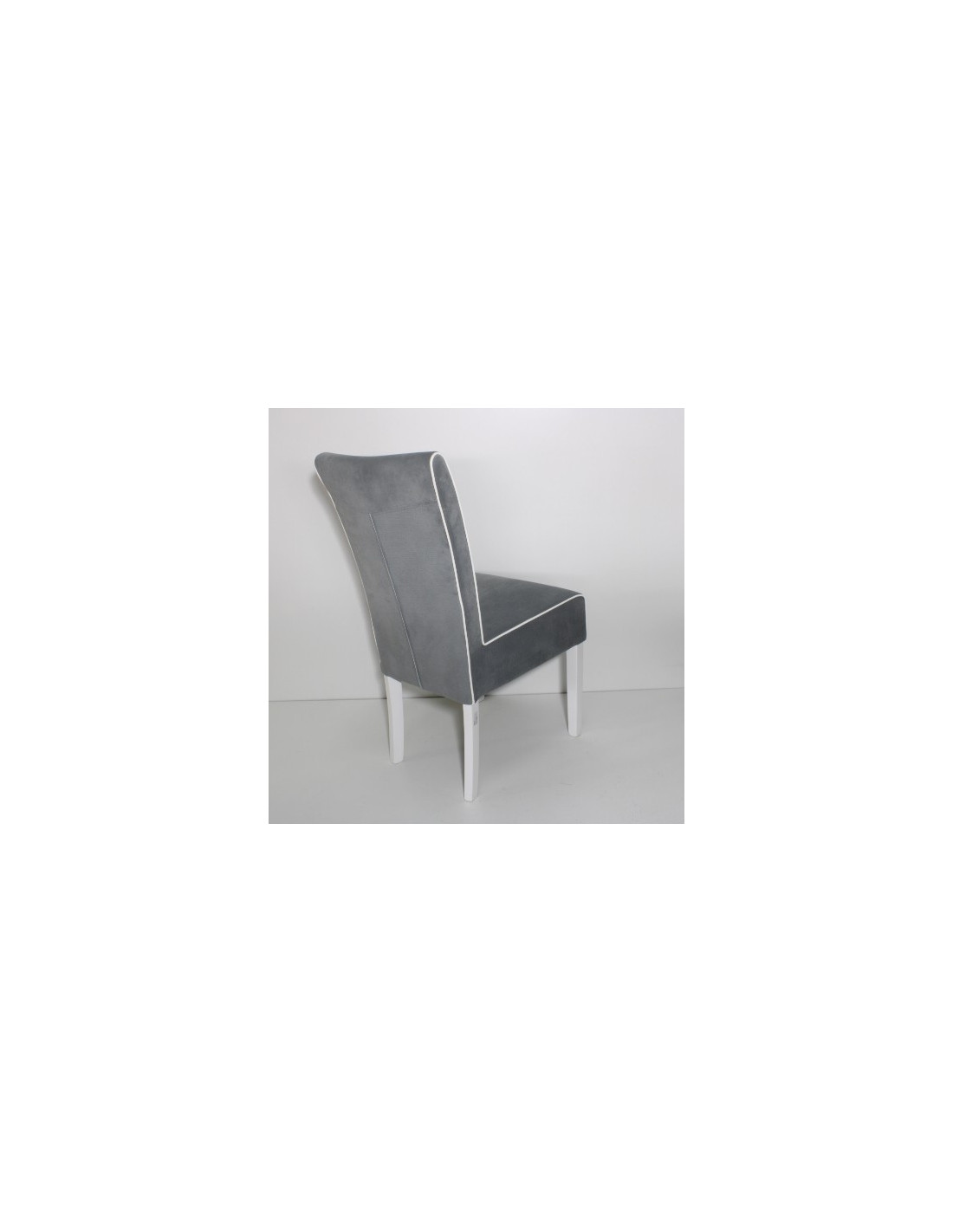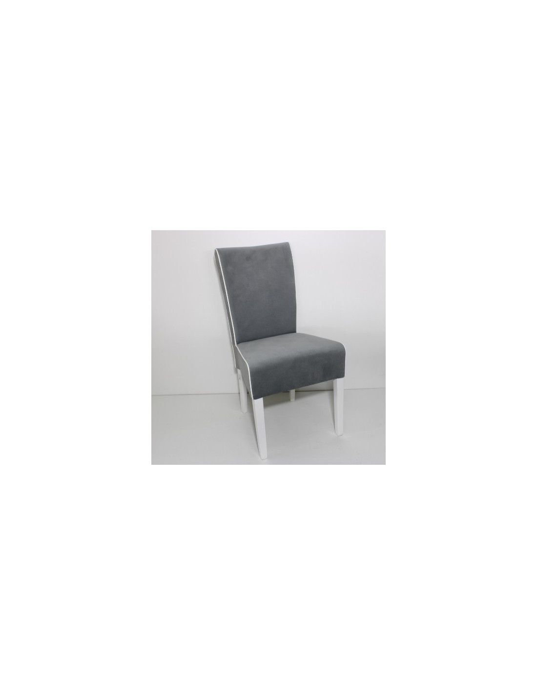 Stolac blagavaonski sa tapeciranim sjedištem i naslonom, materijal: drvo-masiv baza, tekstil boja: siva, noge u bijeloj boji