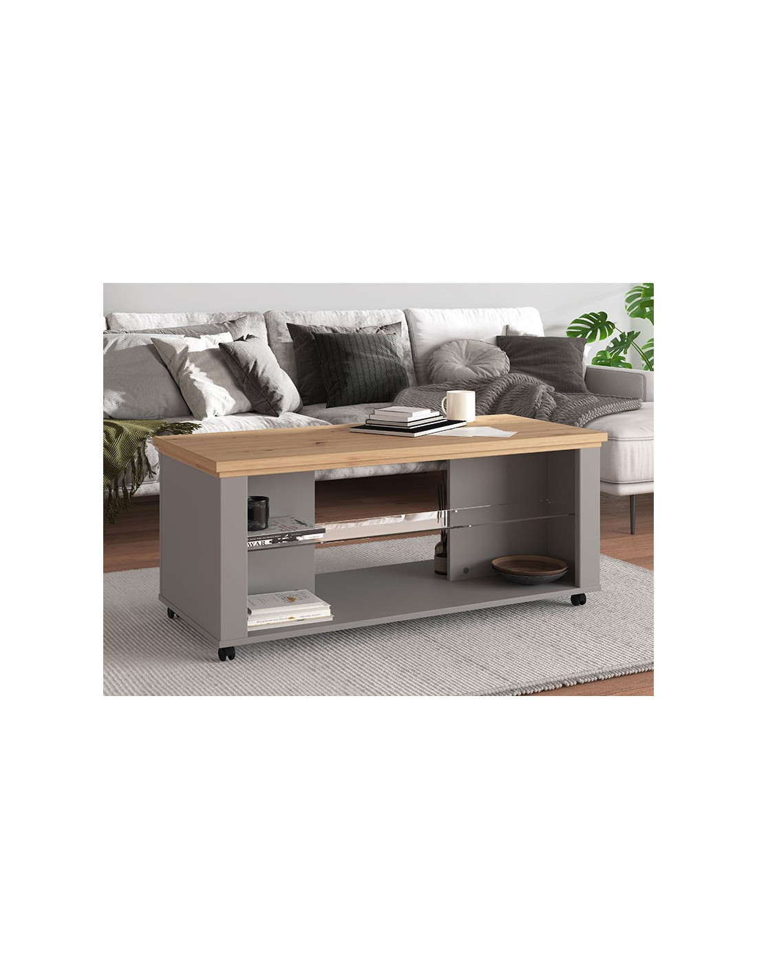 Ovaj klub stolić. unosi suptilniju, monokromatsku notu u prostor. Ispod radne površine ima staklenu policu koja doprinosi dodatnoj eleganciji.
