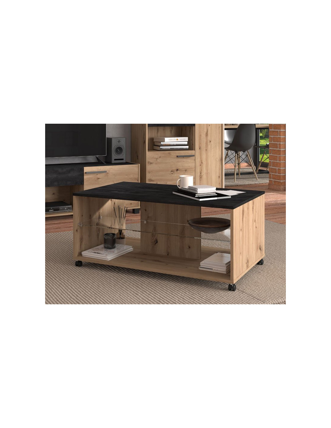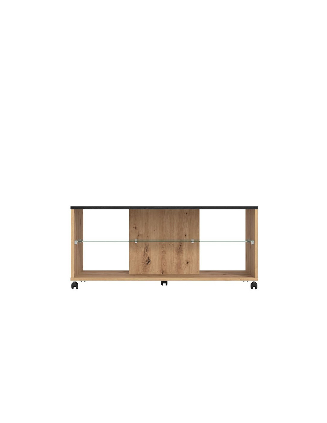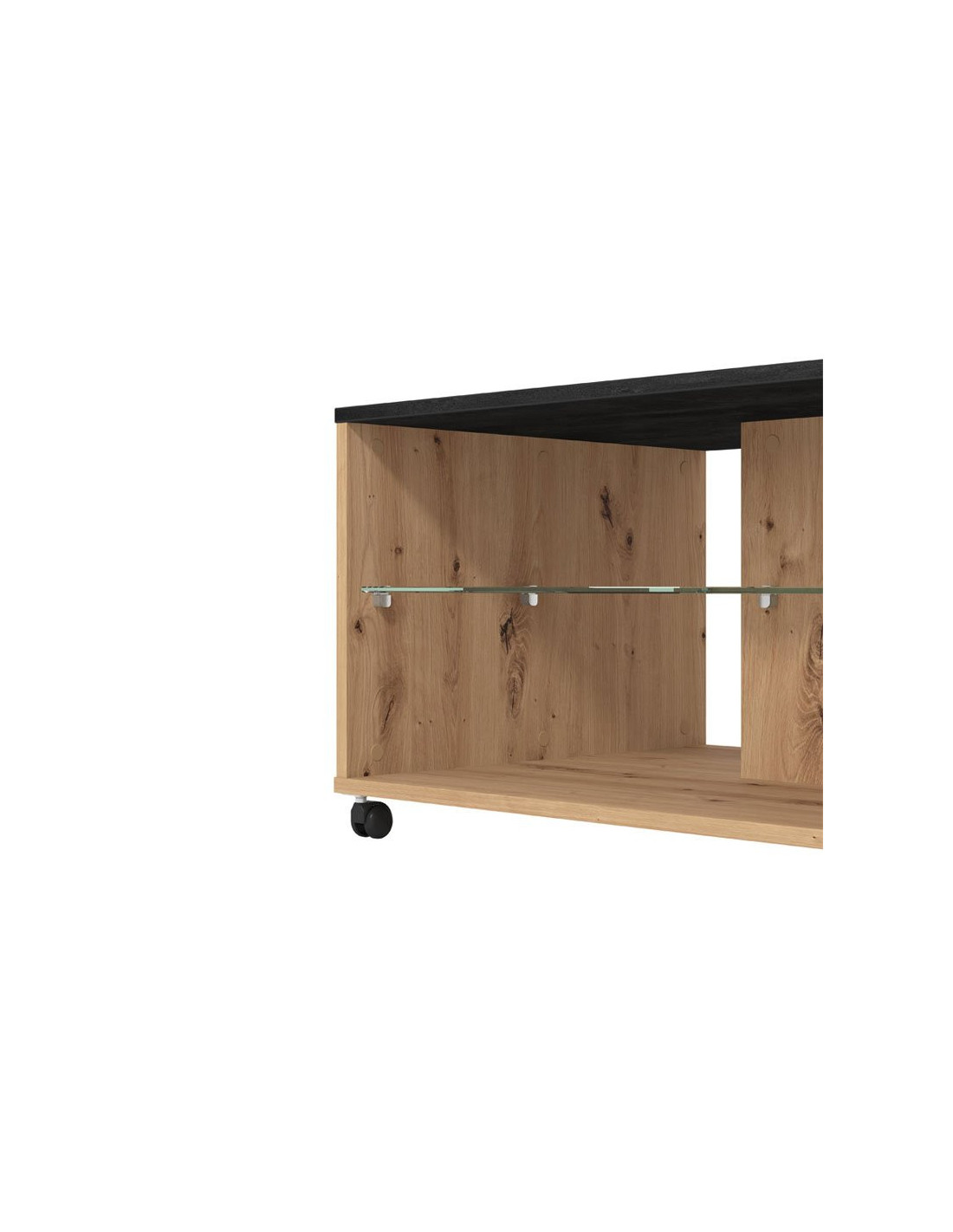 Klub stolić NORTE KS, u kombinaciji dekora artisan hrast i karbon, ima praktične i estetske prednosti. Dominantan detalj u izgledu ovog klub stolića je impresivna staklena polica ispod radne površine, pogodna za odlaganje omiljenih knjiga ili časopisa. Stolić za kavu NORTE KS doprinosi modernom tematskom konceptu uređenja dnevnog boravka.