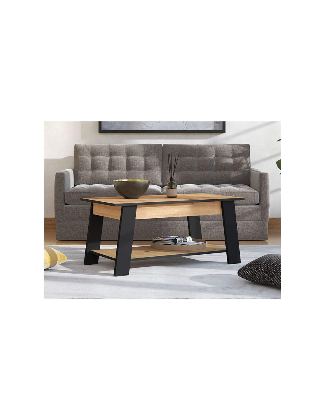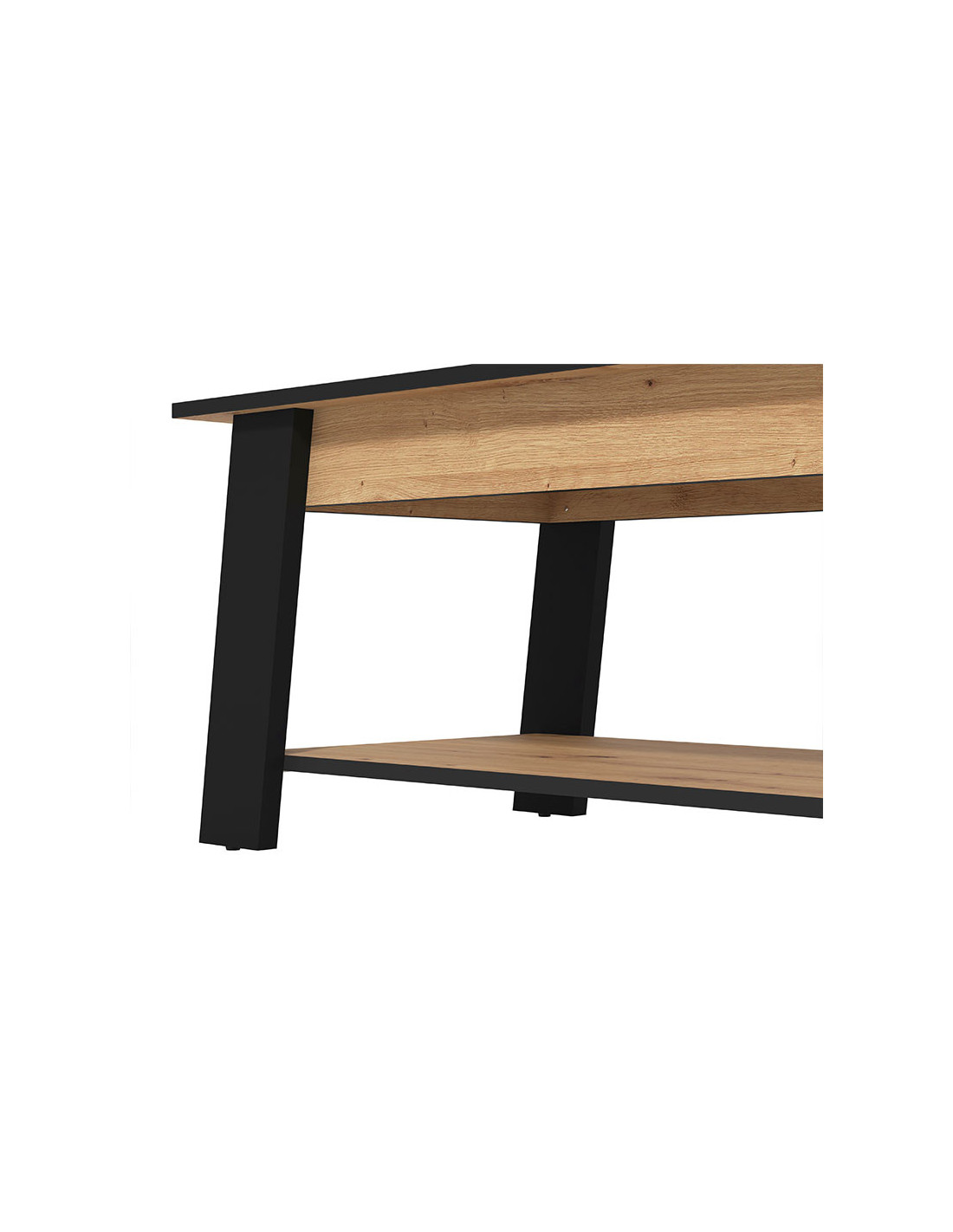 Klub stol PIAVE u kombinaciji dekora artisan hrasta i crne mat folije predstavnik je modernog interijerskog izričaja i kao takav pravo je rješenje za funkcionalno i estetski ugodno uređenje životnog prostora. Uz blago zakošene noge, dominantan detalj u izgledu ovog klub stola je polica ispod radne površine, pogodna za odlaganje vaših omiljenih knjiga ili časopisa.