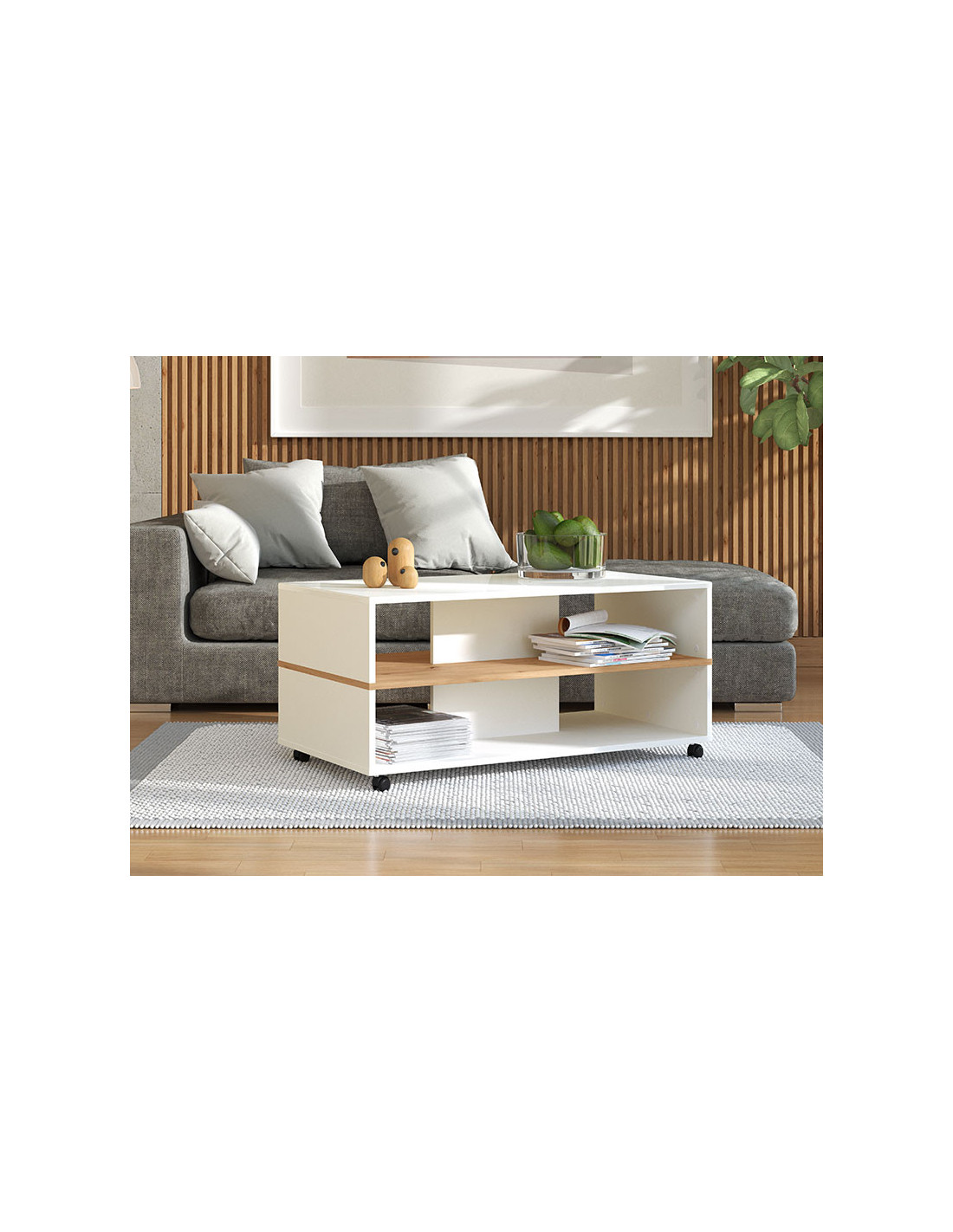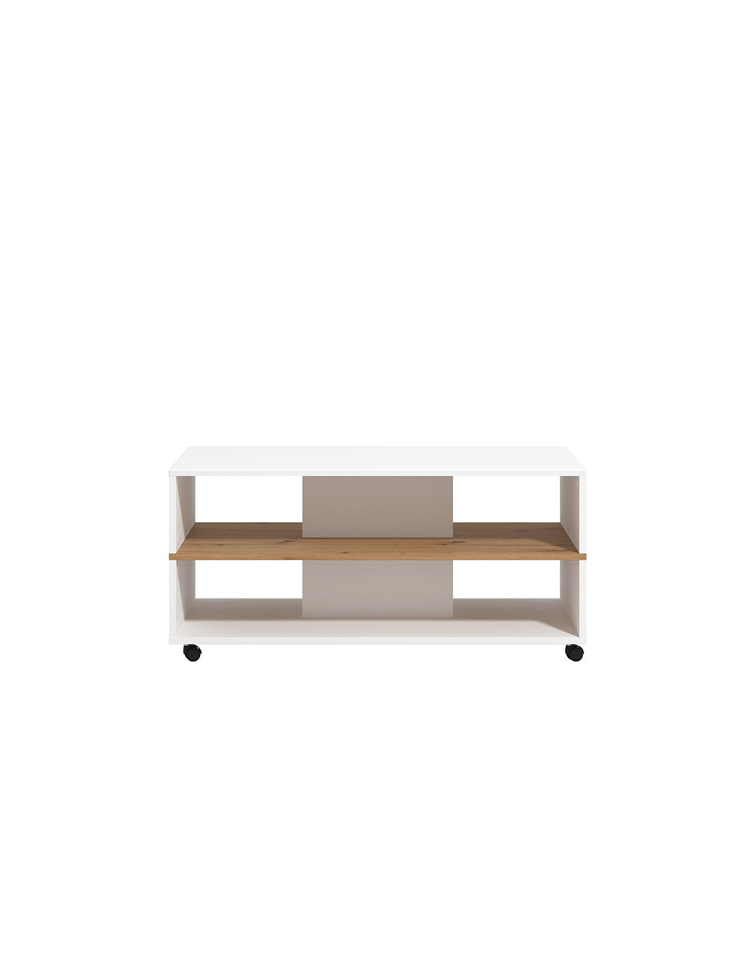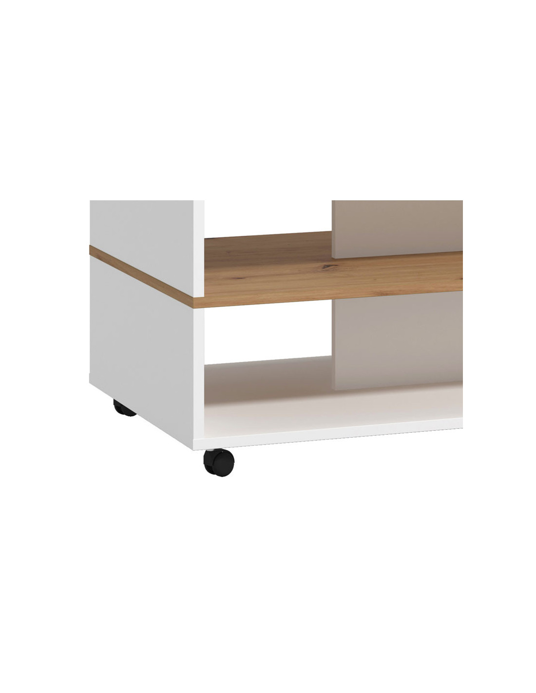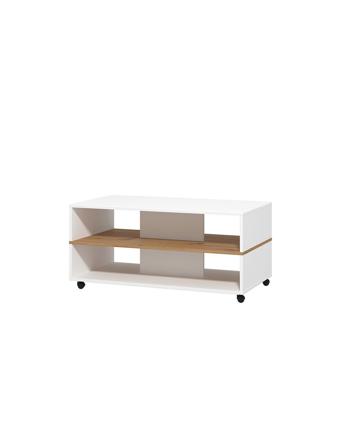 Klub stolić SAVIO, u kombinaciji elegantnog bijelog dekora, dekora artisan hrasta i bijele lakirane folije, ima praktične i estetske prednosti. Dominantan detalj u izgledu ovog klub stolića je efektna polica u kontrastnom dekoru ispod radne površine, pogodna za odlaganje omiljenih knjiga ili časopisa. Klub stolić SAVIO doprinosi suvremenom tematskom konceptu uređenja dnevnog boravka.