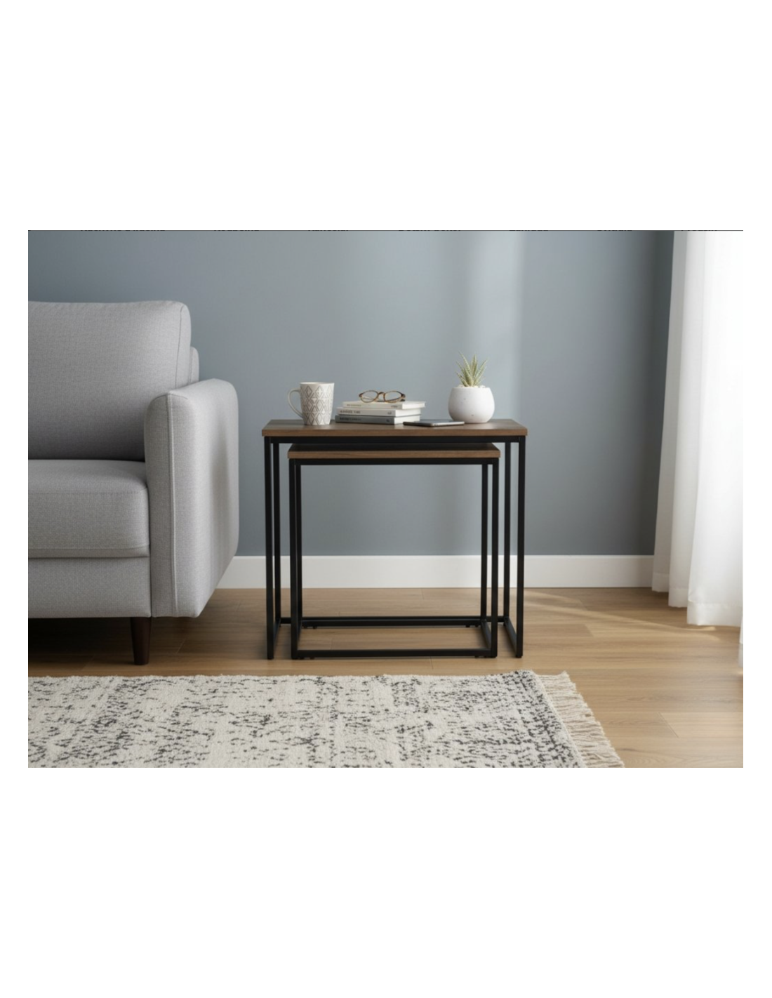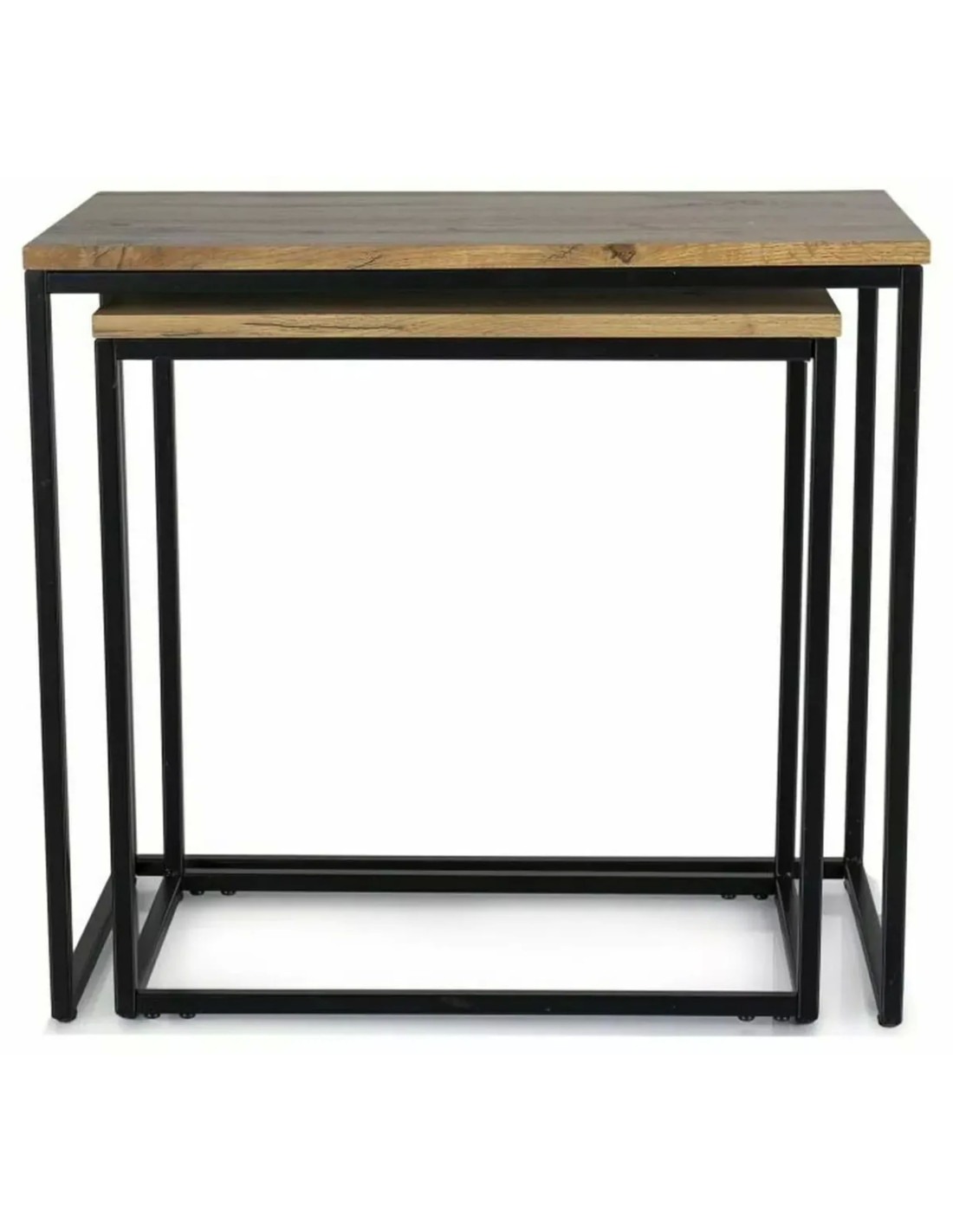 Set od 2 stolića za kavu u dekoru hrasta artisan, elegantno je i praktično rješenje za moderne interijere. Stolovi imaju jednostavan i minimalistički dizajn koji se uklapa i u dnevne i u radne prostore. Stolovi su izrađeni s pločom u dekoru hrasta artisan i imaju metalnu konstrukciju s crnim okvirom, što im daje moderan industrijski izgled.