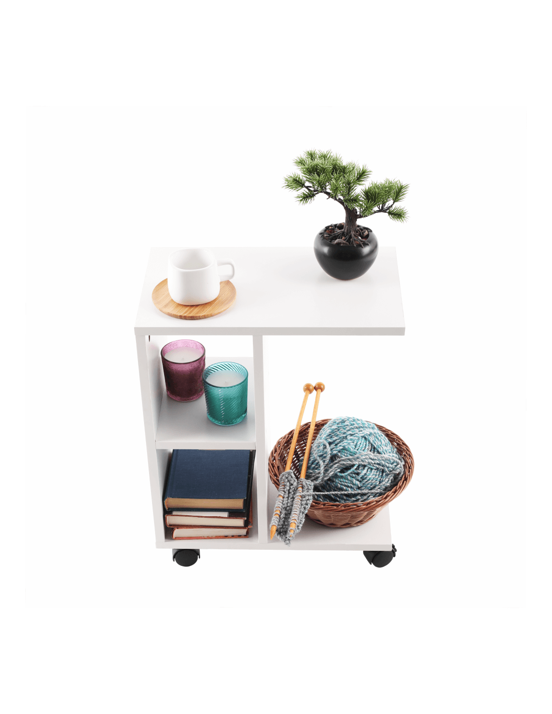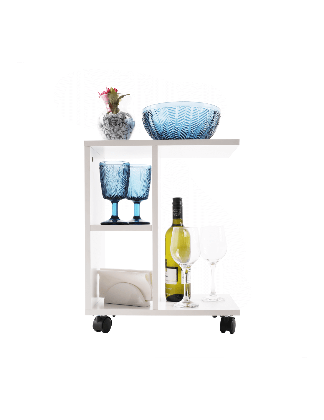 Abbas, pomoćni stolić na kotačićima, upravo je ono što ste tražili. Sjajno će upotpuniti svaki prostor u vašem domu. Dizajn bijele boje osigurava da se stol lako kombinira s ostalim namještajem. Postat će vaš pomoćnik za blagovanje, primjerice u dnevnoj sobi ispred TV-a ili u dječjoj ili studentskoj sobi.