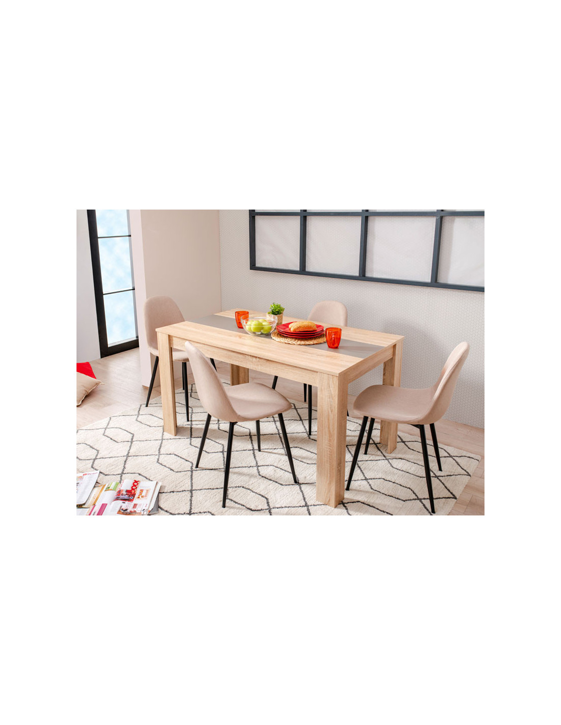 Model blagovaonskog stola Domus, u kombinaciji boje sonoma i latte, pridonosi ambijentalnoj transformaciji zbog mogućnosti odabira jedne od dvije kombinacije uzoraka radne površine tijekom montaže. Razne kombinacije dva uzorka na radnoj površini osigurat će da se blagovaonski stol Domus estetski uklopi u različite unutarnje kompozicije.