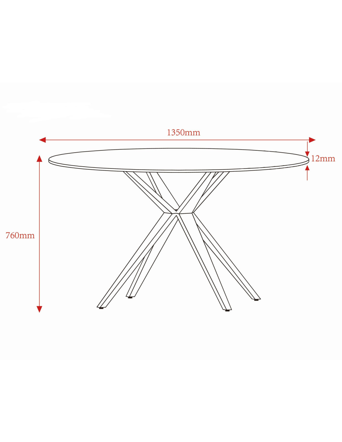Š 135 cm / D 135 cm / V 76 cm