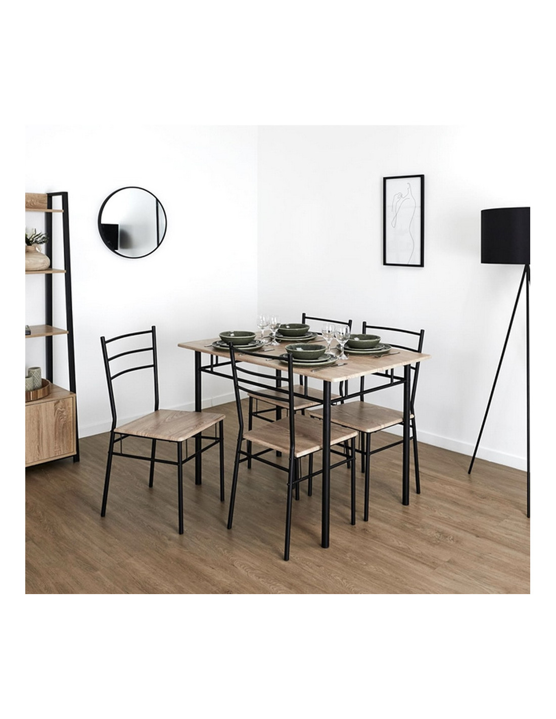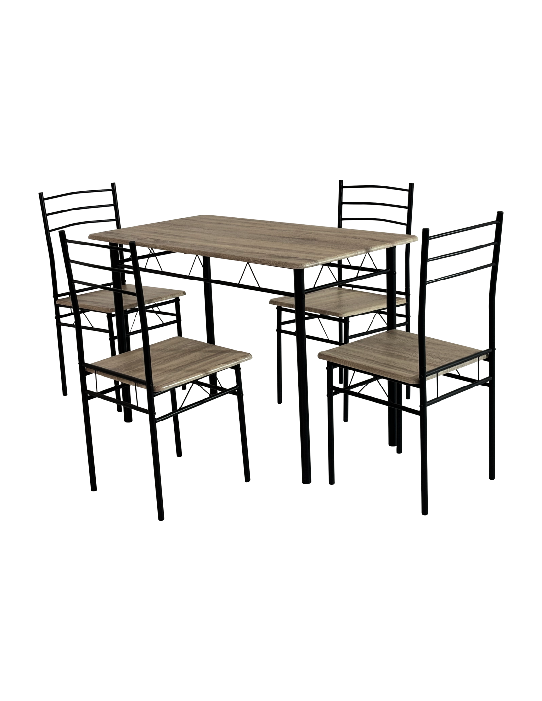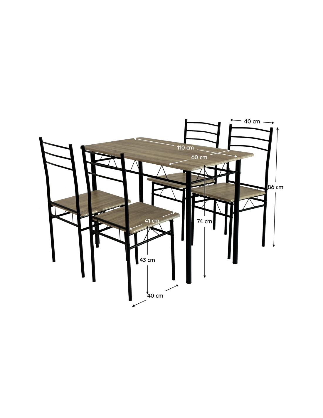 Stvorite ugodno mjesto za obiteljsko vrijeme uz objedovanje uz blagovaonski set MAKO. Set uključuje jedan stol i četiri stolice u kombinaciji boja sonoma hrasta i crne. Metalna konstrukcija nadopunjena visokokvalitetnim MDF-om osigurava stabilnost. Kombinira moderan dizajn s funkcionalnošću i udobnošću, što ga čini prikladnim dodatkom svakoj kuhinji ili blagovaonici. MAKO je odličan izbor za sve koji traže kombinaciju kvalitete, estetike i funkcionalnosti.