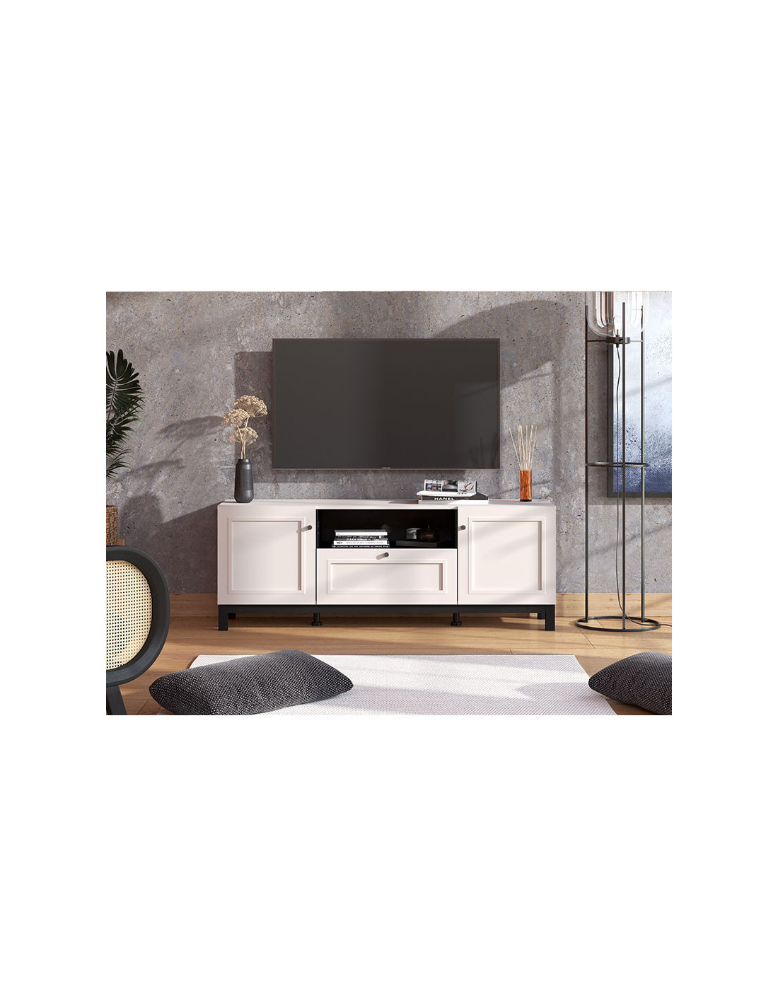 TV stolić SAVOIA 3K1F2V u kombinaciji kašmir dekora i kašmir folije karakteriziraju karakteristike moderne klasike. Savršeno raspoređeni korisni prostor sastoji se od dvije zatvorene pregrade, jedne otvorene police i jedne praktične ladice. Dio je SAVOIA sustava opremanja dnevnih soba koji zadovoljava svakodnevne životne i ambijentalne potrebe. Postoji mogućnost dodavanja rasvjete.