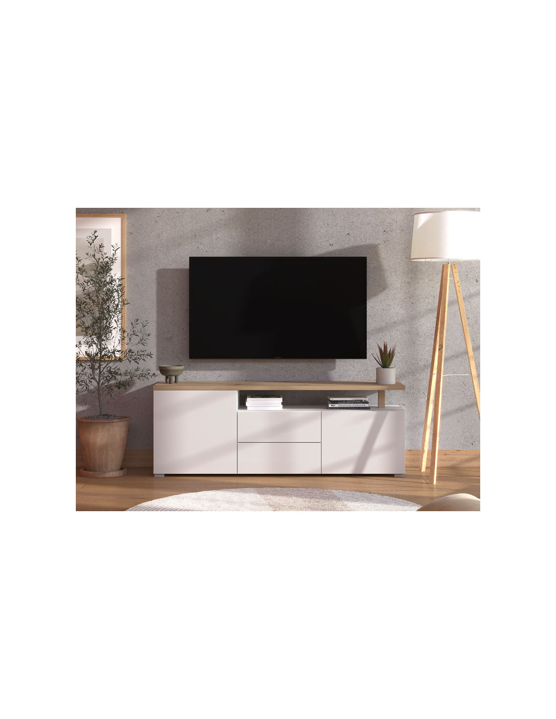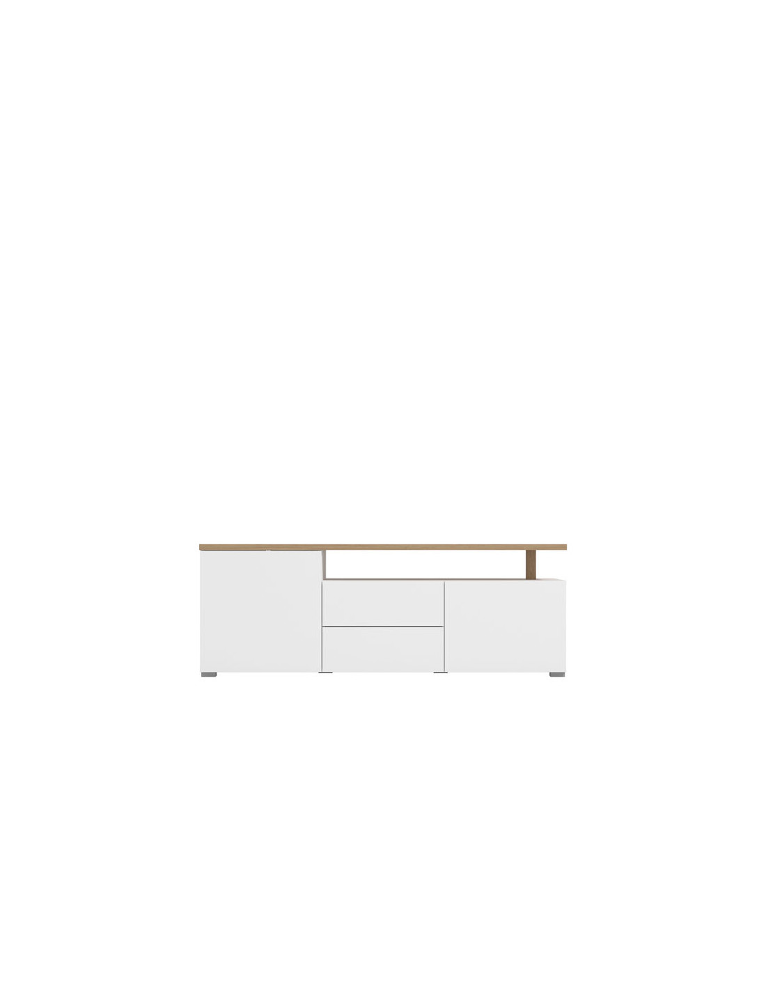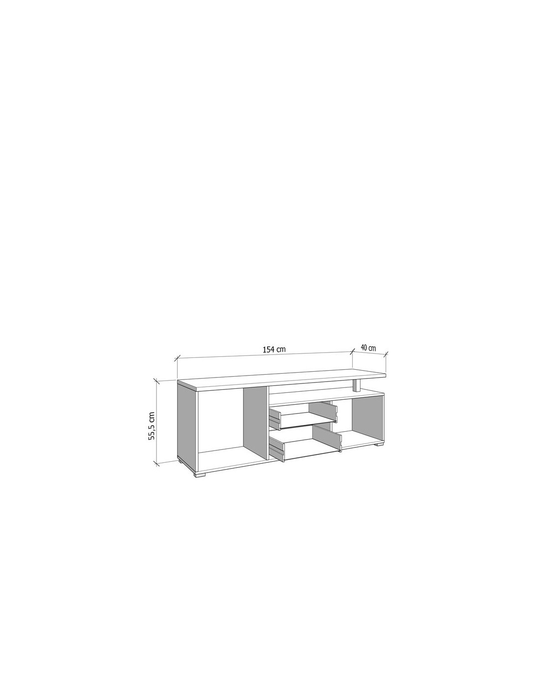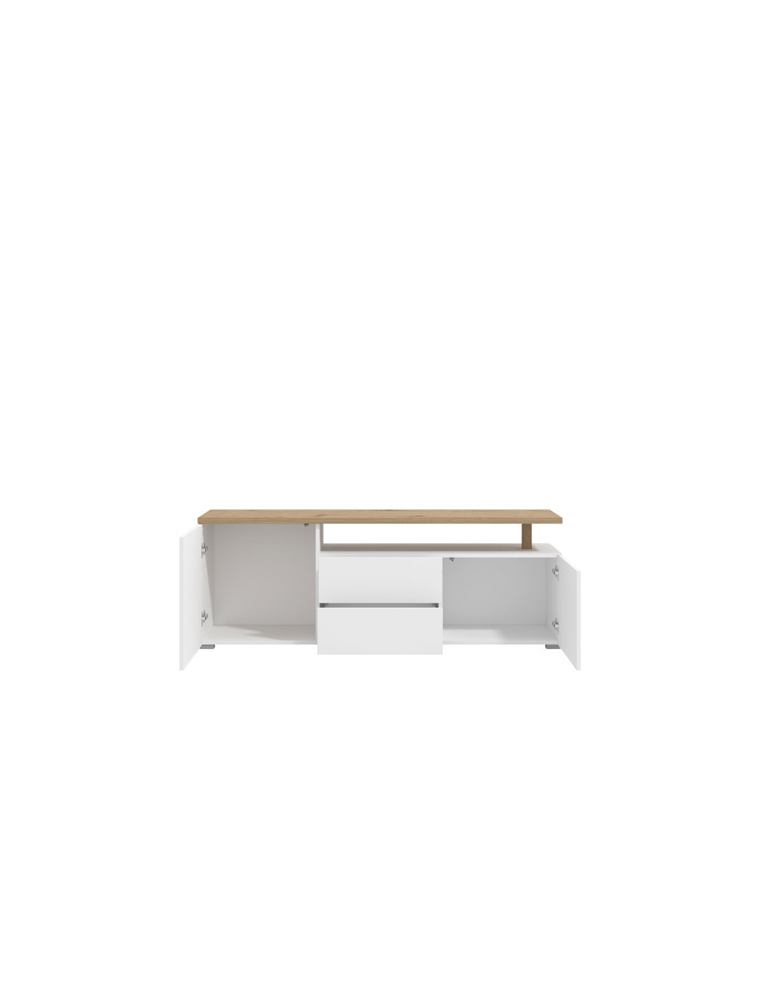 ATERNO TV 154 3K2F2V, izrađen u kombinaciji bijele boje, artisan hrasta i artisan hrast folije, predstavnik je suvremenog dizajna i funkcionalne stilizacije prostora. Zahvaljujući kombinaciji otvorenog segmenta za odlaganje audio-vizualne opreme i zatvorenih segmenata, donosi dovoljno prostora za sve stvari. Upotrebni prostor, pored otvorene police, čine i dva pregradna dijela i dvije funkcionalne ladice.