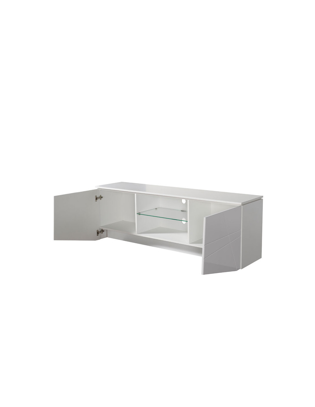 TV polica CADIZ predstavlja kombinaciju elegantnog bijelog dekora i bijele lakirane folije te svojim izuzetno modernim dizajnom stvara mogućnost poboljšanja elegancije i estetskog doživljaja prostorije u kojoj se nalazi. Ovaj inovativni dizajn dodatno će se istaknuti ugradnjom dodatne rasvjete.